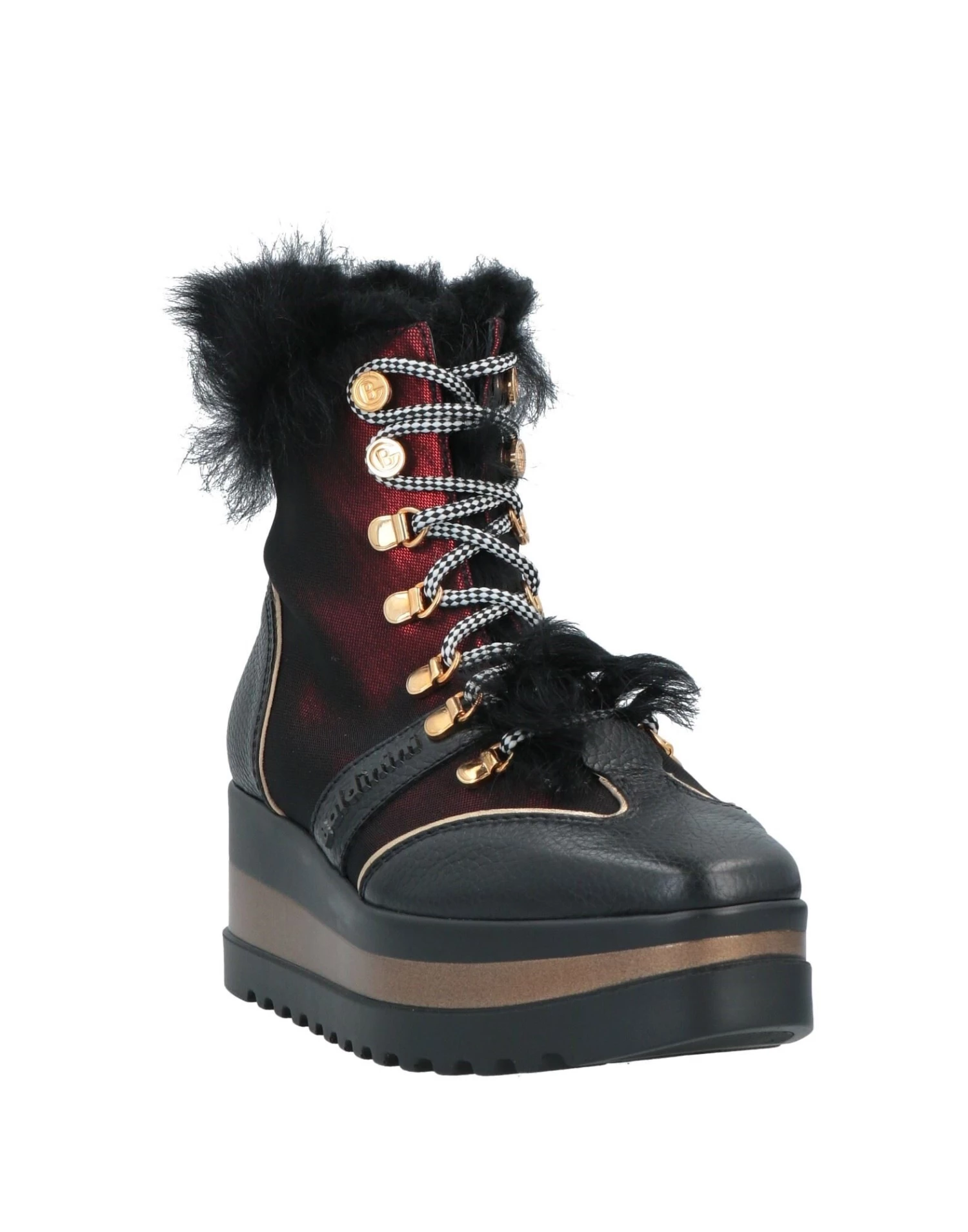 leather, textured leather, laminated effect, brand logo, two-tone, fully lined, laces, round toeline, wedge heel, rubber wedge, rubber cleated sole, contains non-textile parts of animal origin