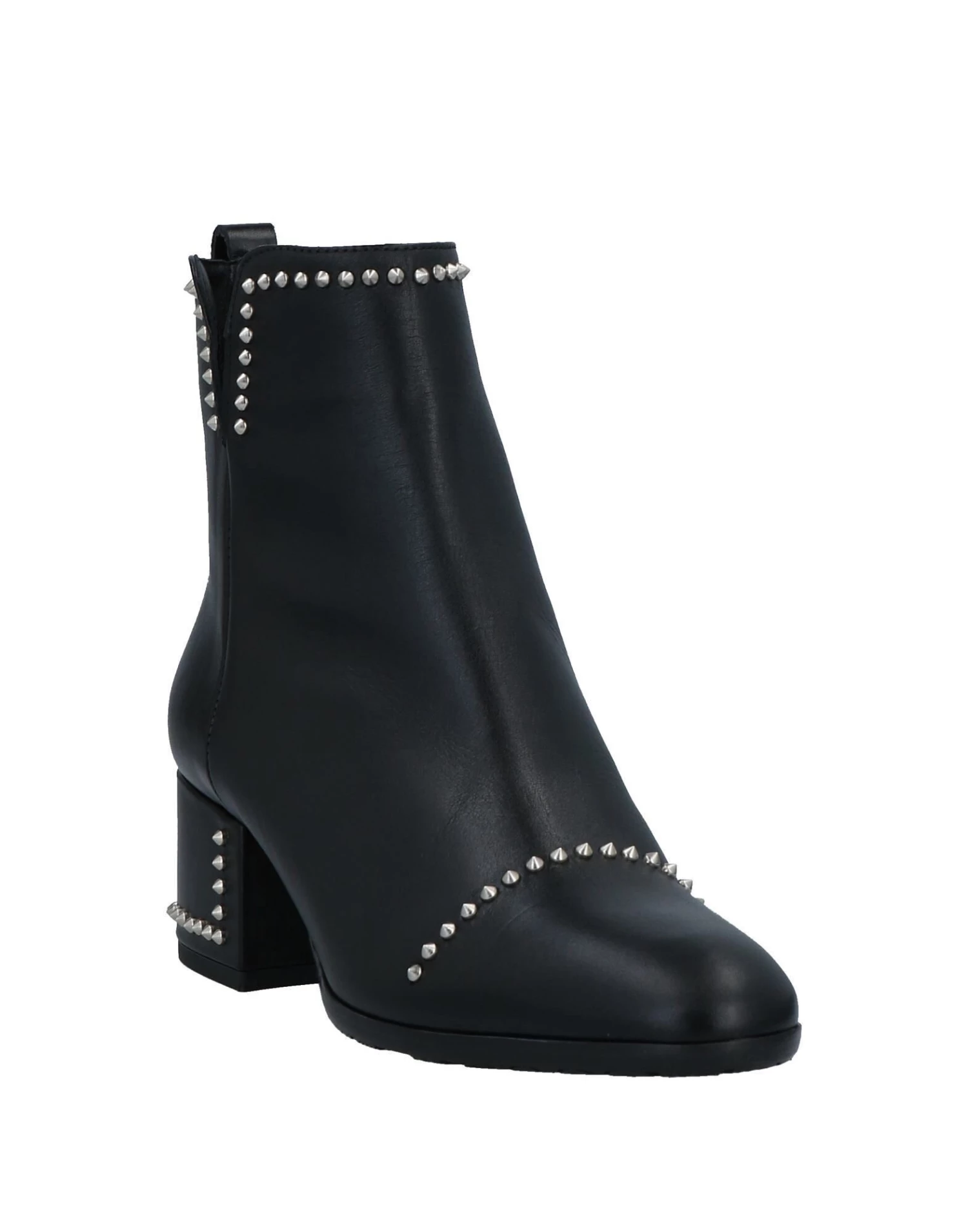 leather, studs, solid colour with appliqués, leather lining, zipper closure, round toeline, square heel, covered heel, rubber cleated sole, contains non-textile parts of animal origin