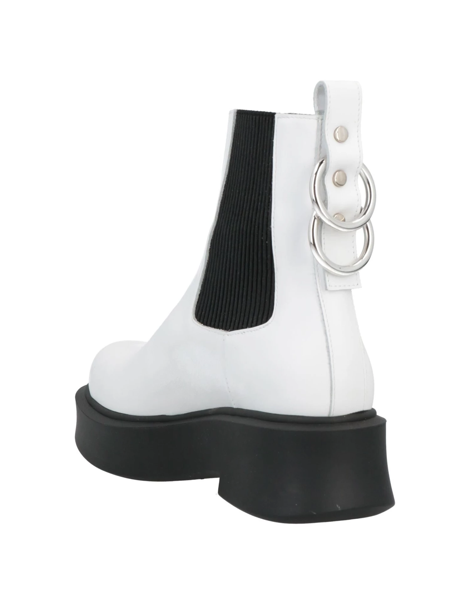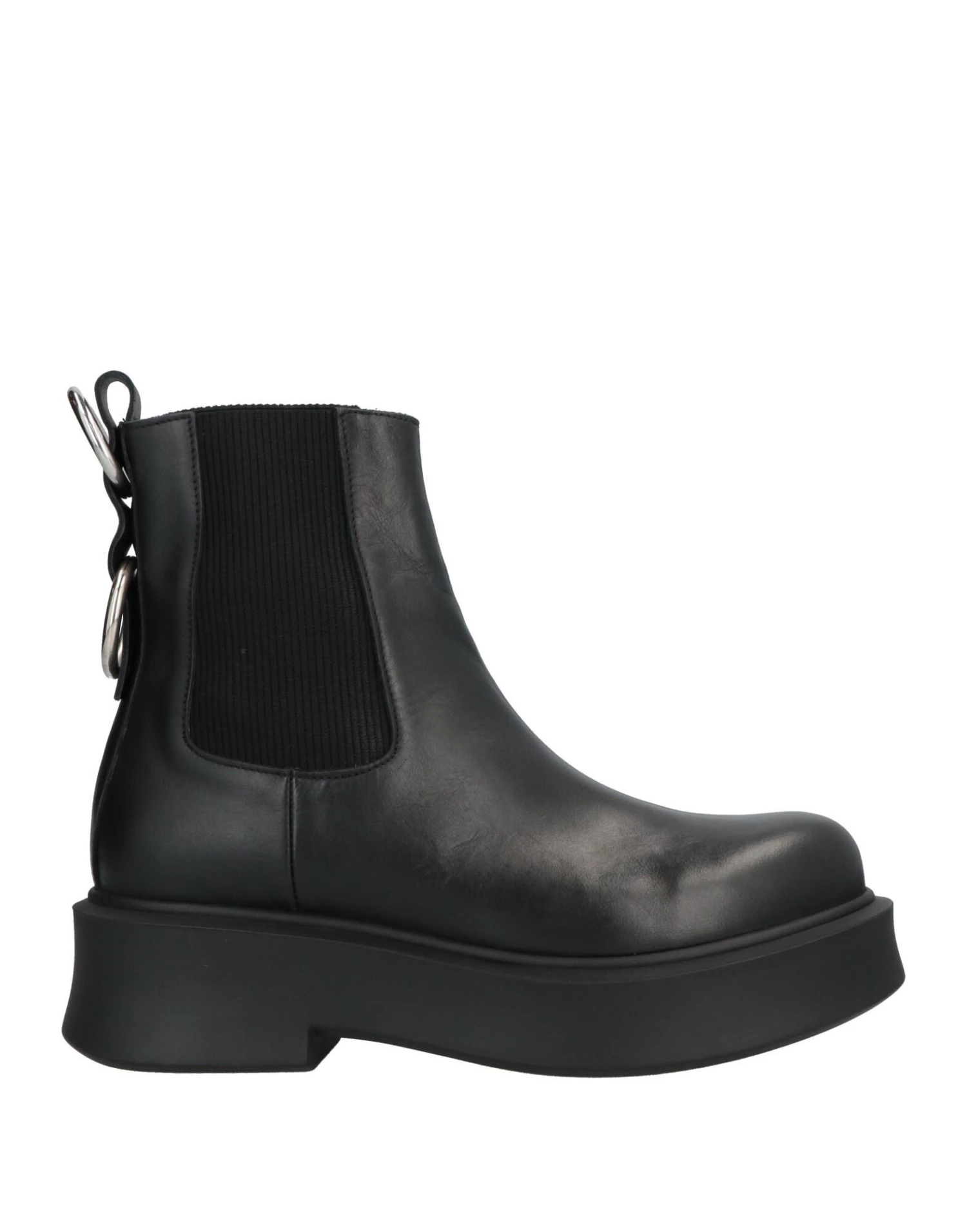 leather, metal applications, solid colour with appliqués, leather backing, zipper closure, elasticized gores, round toeline, square heel, rubber sole, contains non-textile parts of animal origin