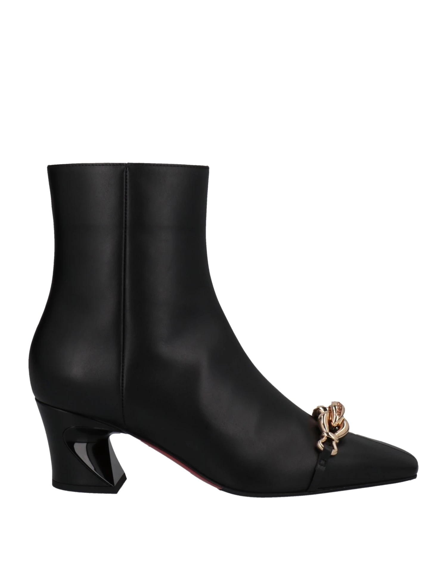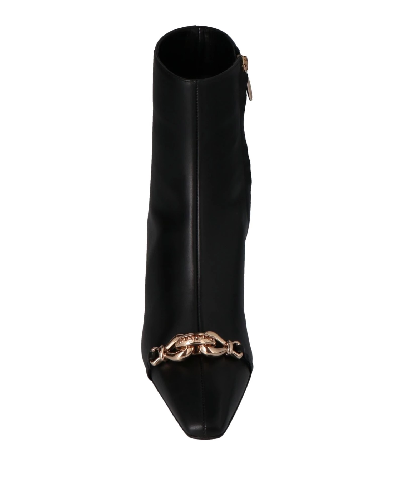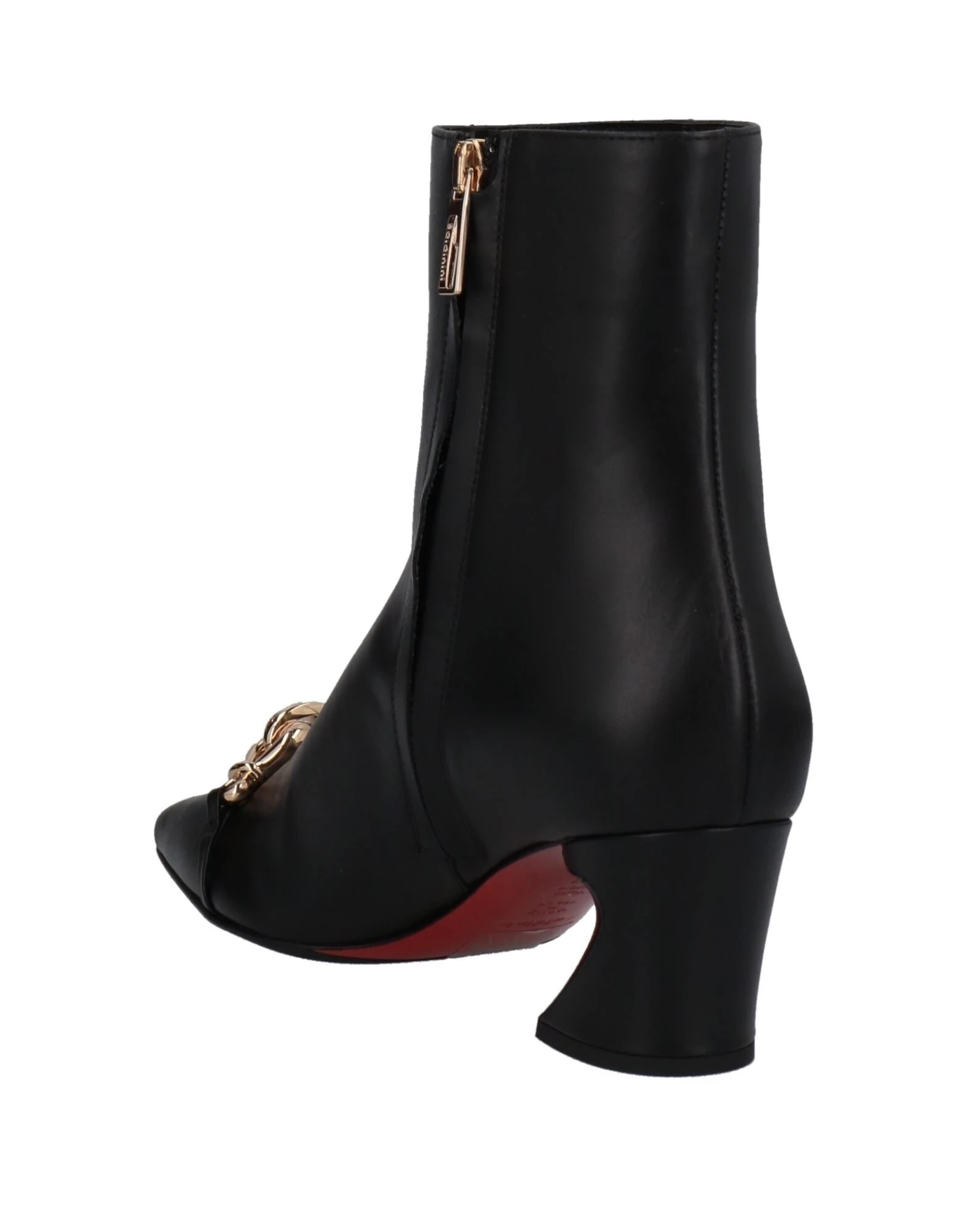 leather, brand logo, metal applications, solid colour with appliqués, leather backing, zipper closure, square toeline, square heel, covered heel, leather/rubber sole, contains non-textile parts of animal origin
