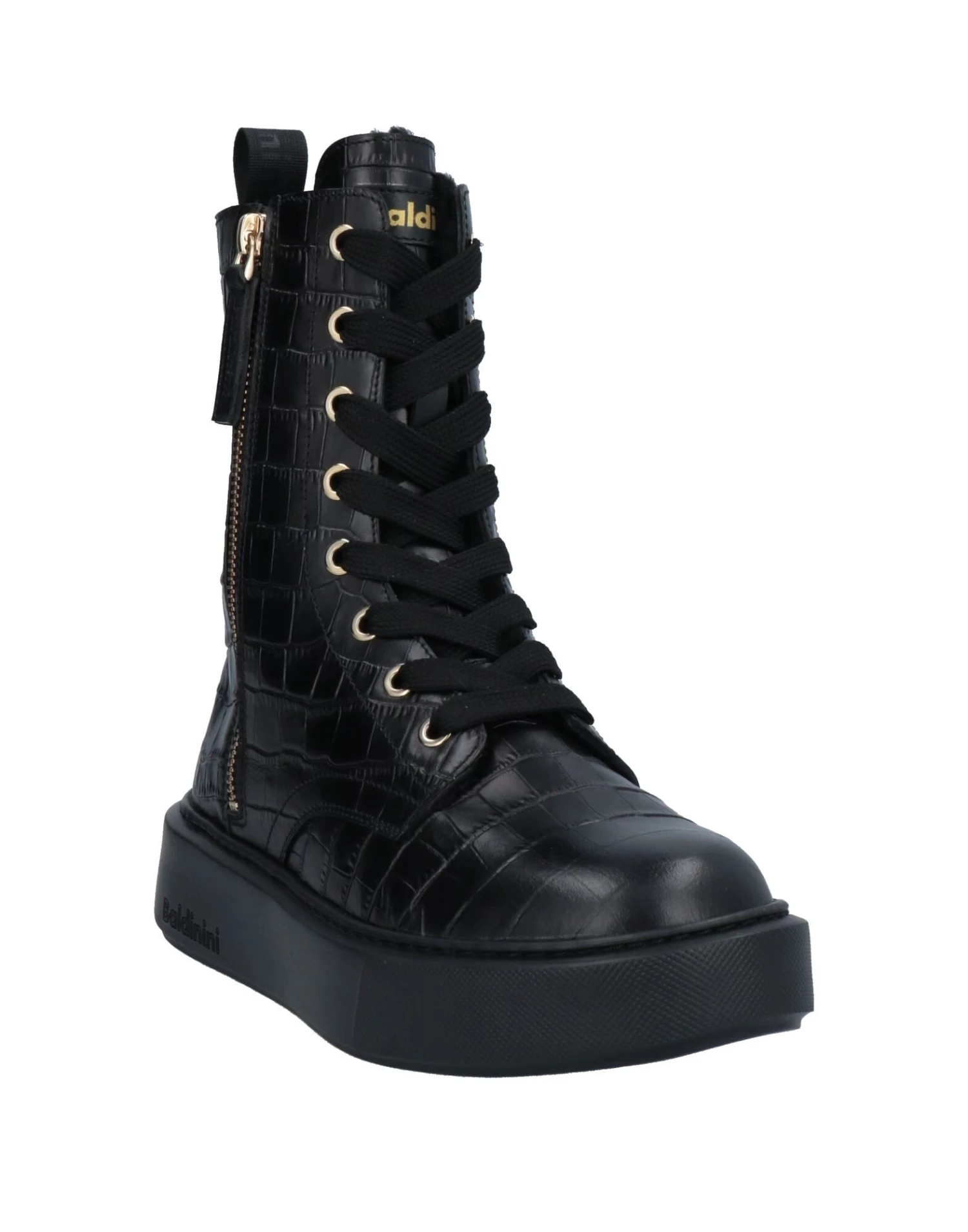 leather, no appliqués, solid color, zipper closure, leather backing, round toeline, wedge heel, rubber cleated sole, rubber wedge, contains non-textile parts of animal origin, crocodile print