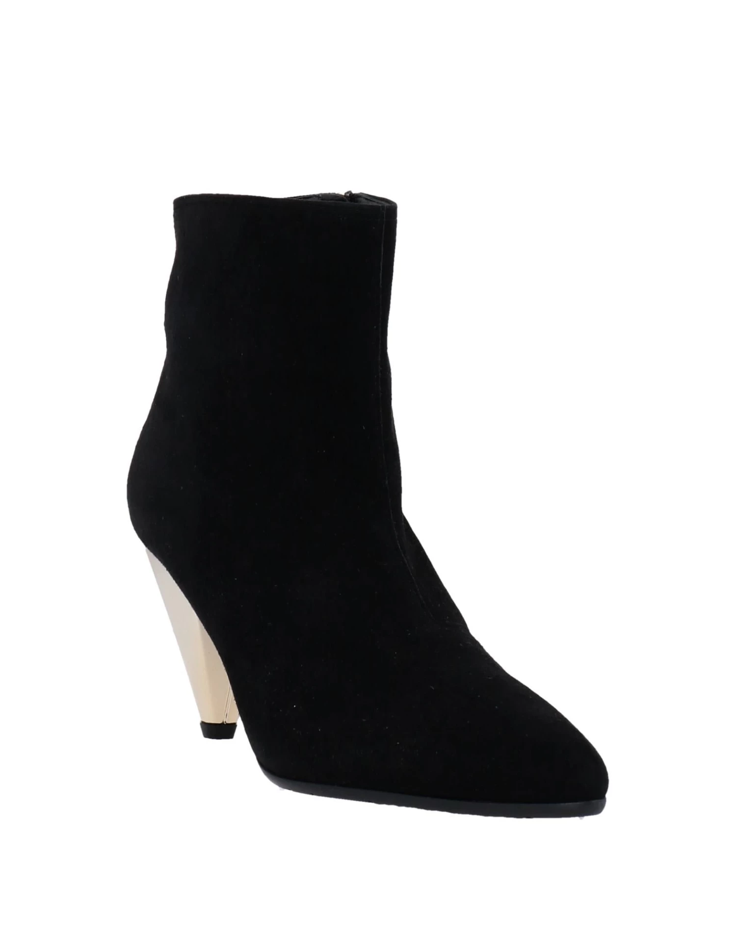 leather, suede effect, no appliqués, solid color, leather backing, zipper closure, narrow toeline, cone heel, rubber cleated sole, contains non-textile parts of animal origin