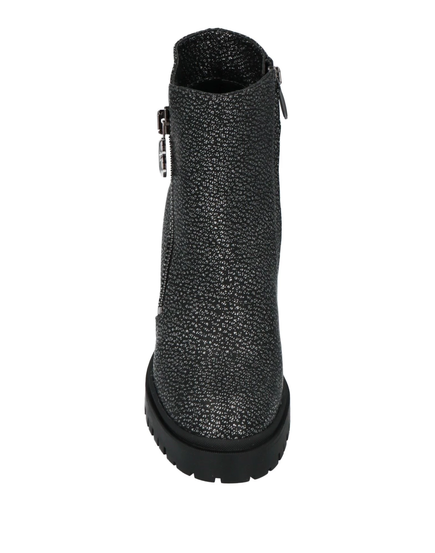 leather, laminated effect, brand logo, two-tone, leather backing, zipper closure, round toeline, square heel, lug sole, contains non-textile parts of animal origin