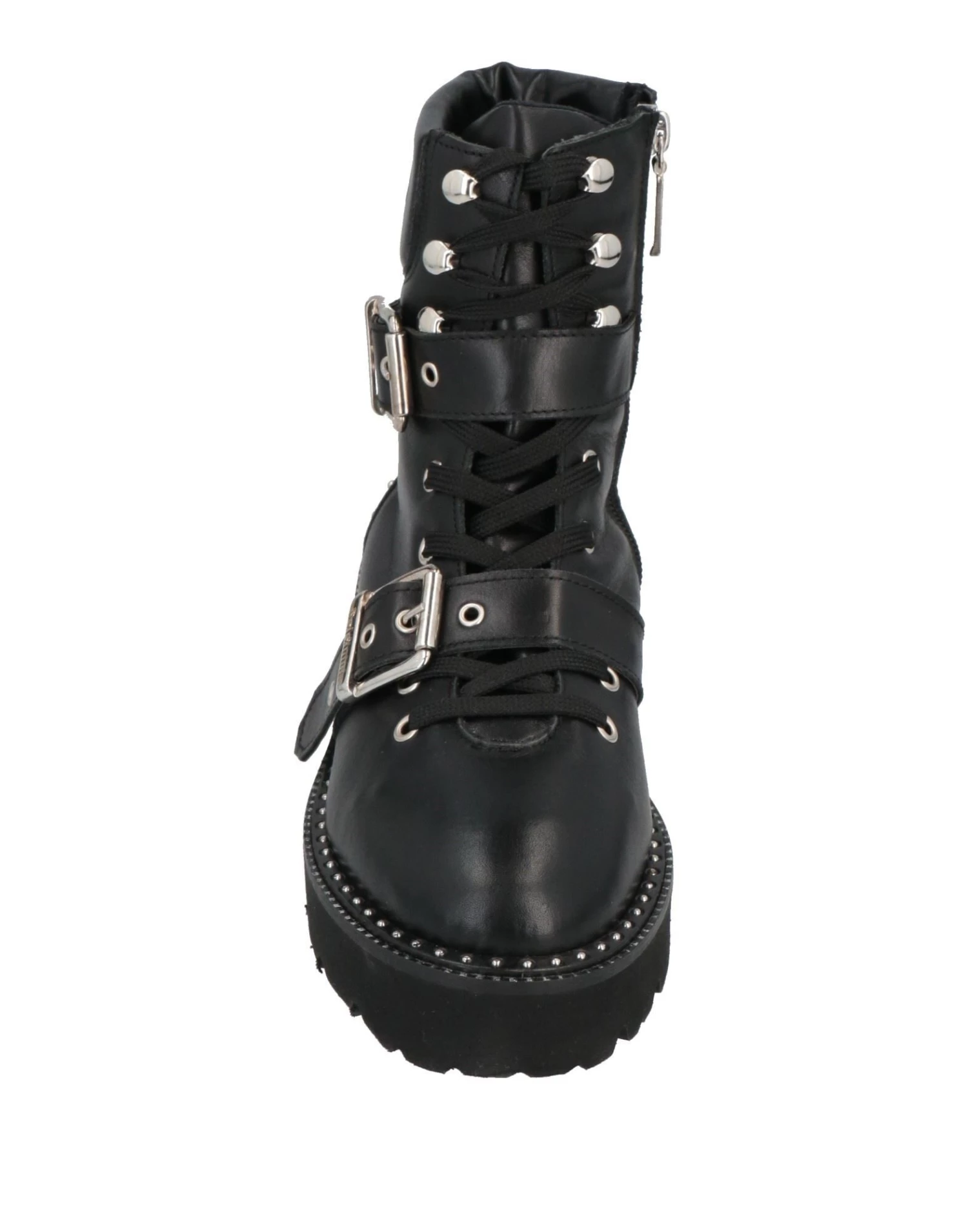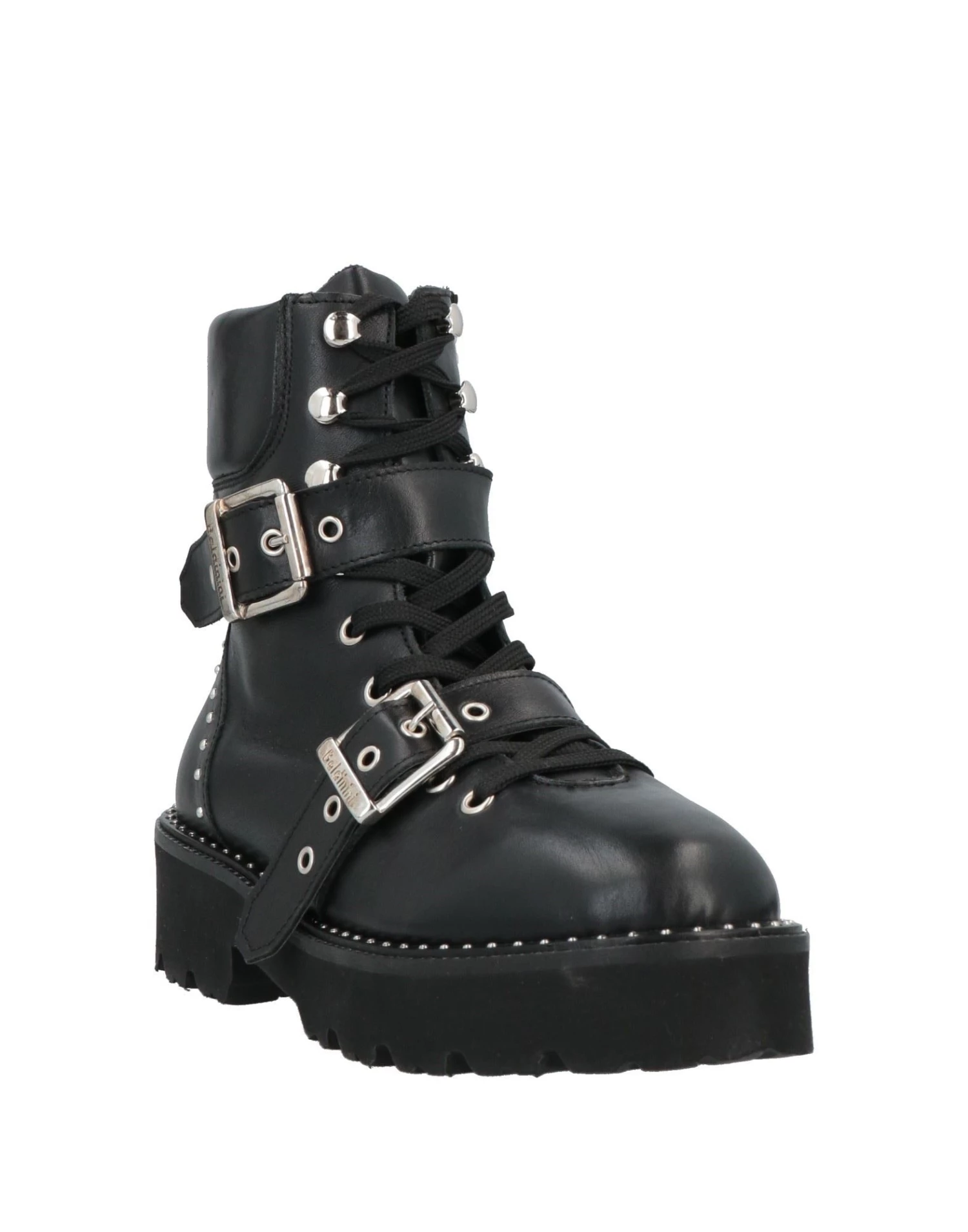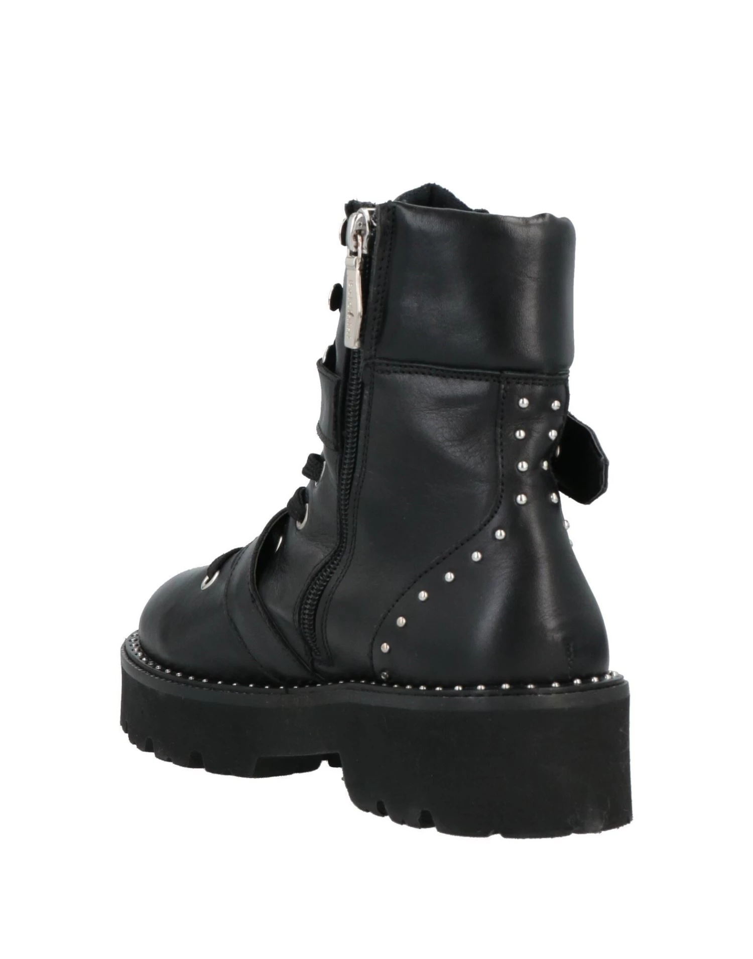 leather, metal applications, solid colour with appliqués, leather backing, laces, zipper closure, round toeline, square heel, lug sole, contains non-textile parts of animal origin