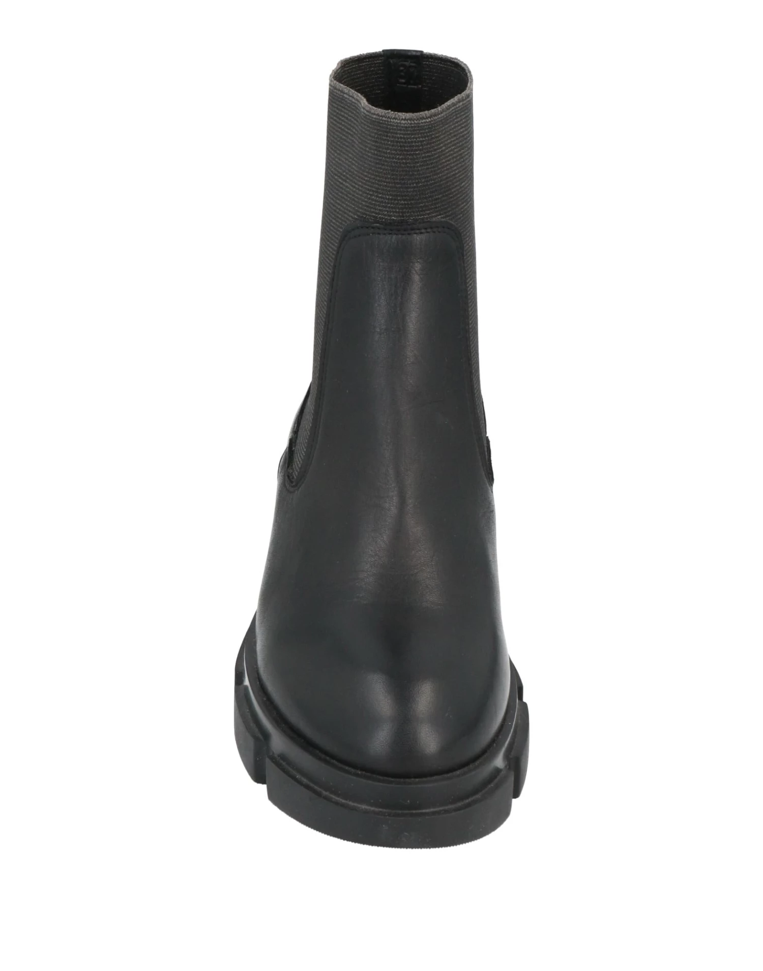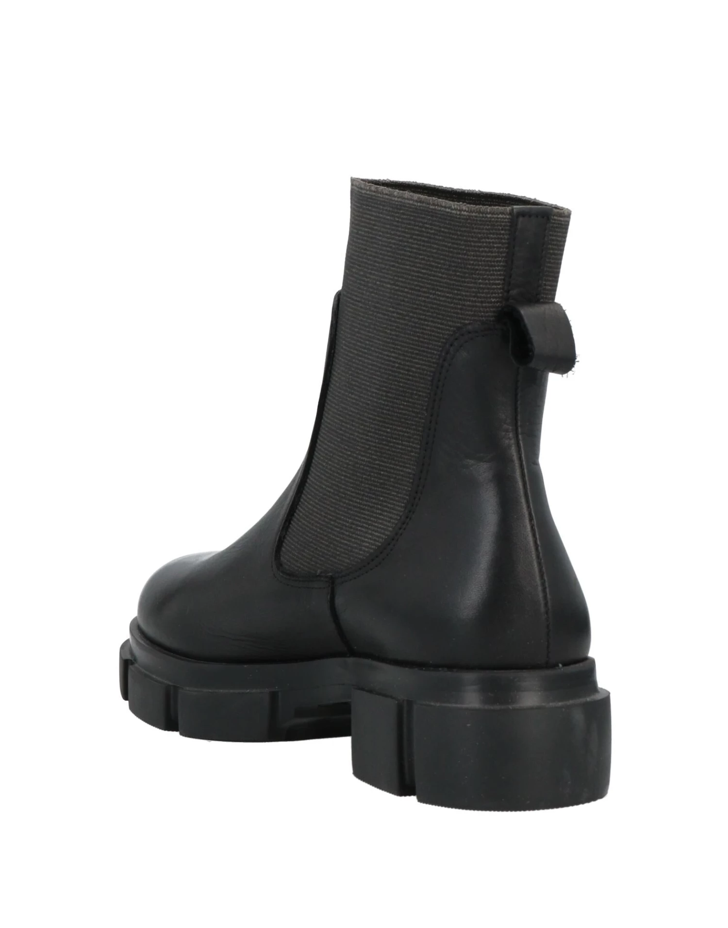 no appliqués, solid color, leather backing, elasticized gores, round toeline, square heel, rubber cleated sole, contains non-textile parts of animal origin