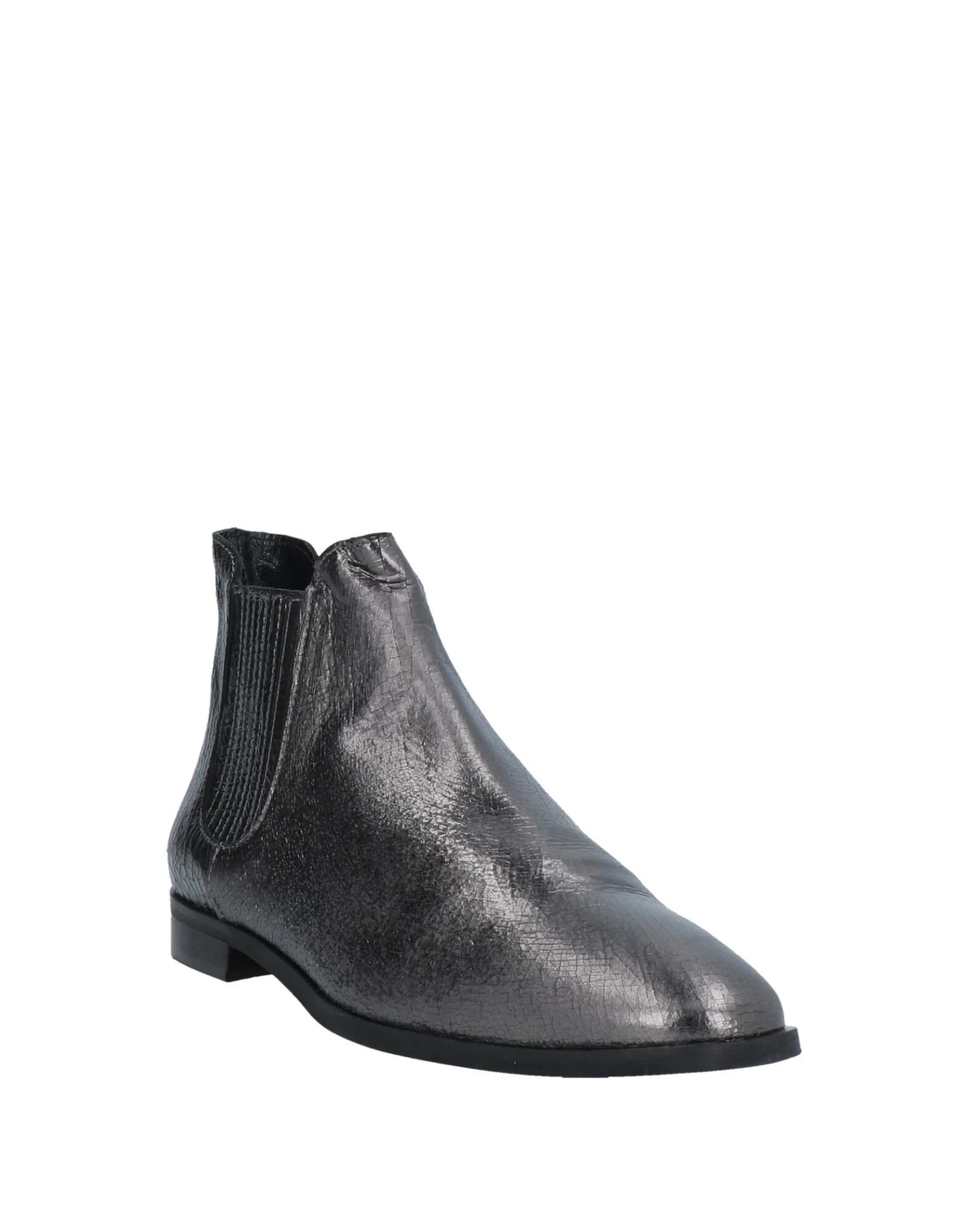leather, laminated effect, no appliqués, solid color, leather lining, elasticized gores, round toeline, flat, rubber sole, contains non-textile parts of animal origin