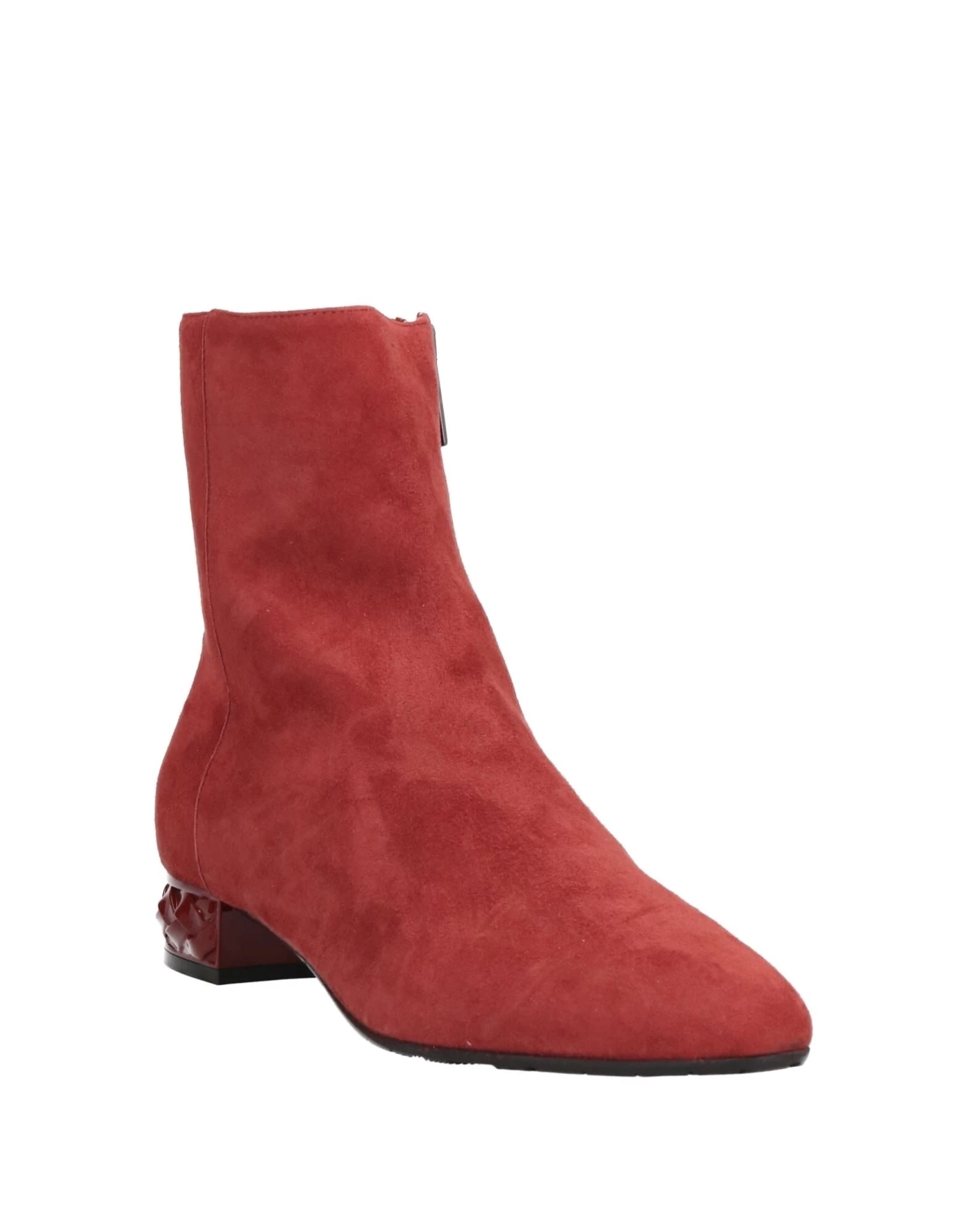leather, suede effect, no appliqués, solid color, leather backing, zipper closure, square heel, round toeline, covered heel, rubber cleated sole, contains non-textile parts of animal origin