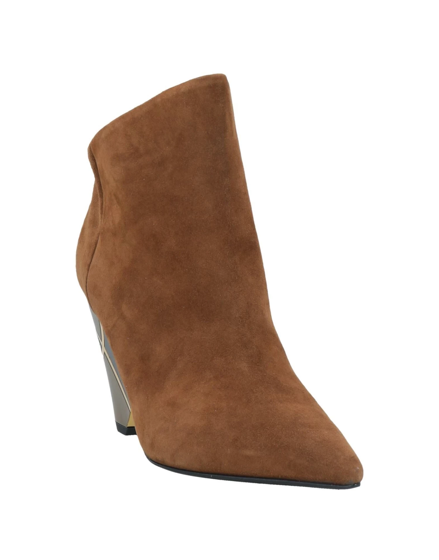 leather, suede effect, solid color, no appliqués, leather backing, narrow toeline, cone heel, rubber sole, contains non-textile parts of animal origin