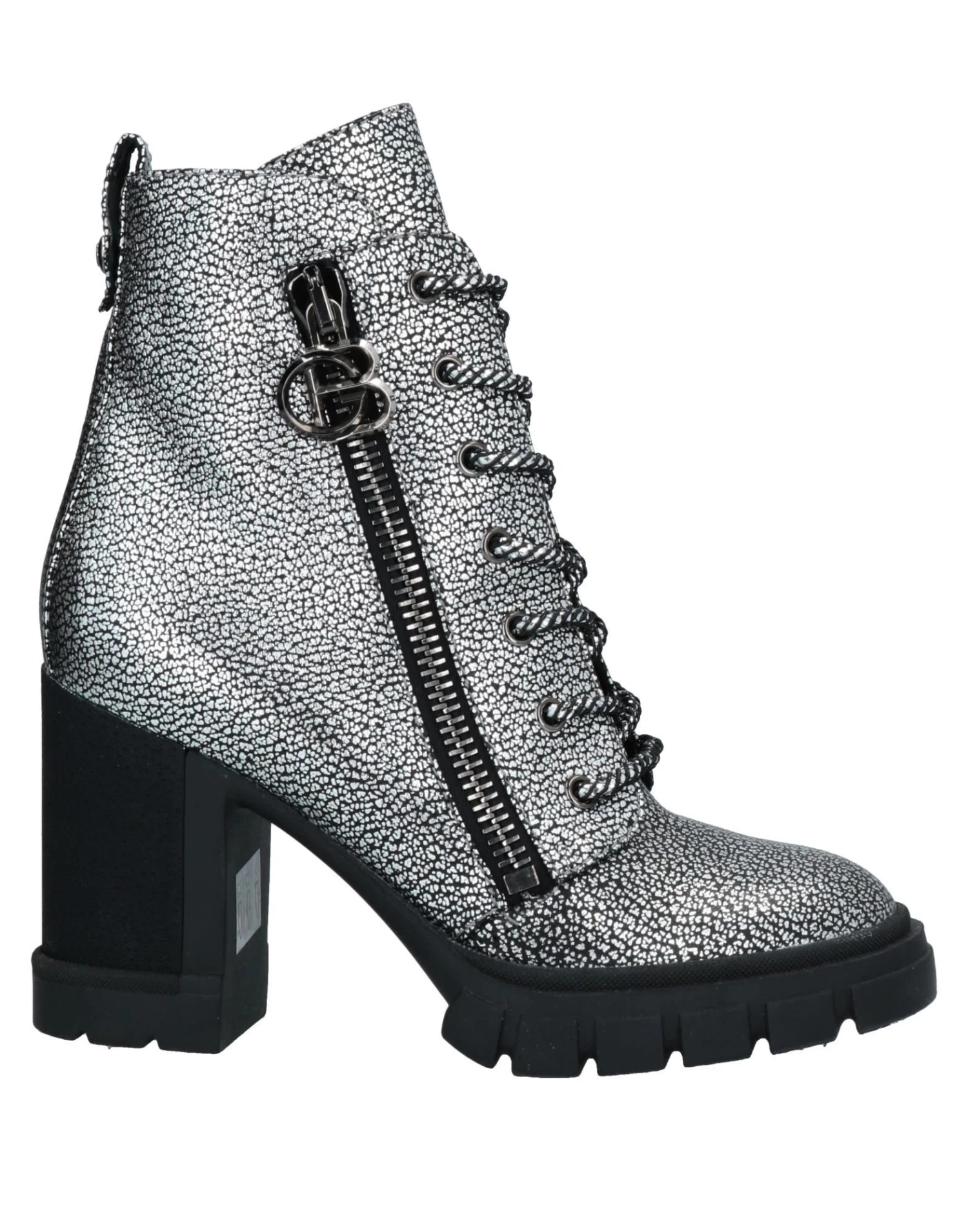 leather, metallic print, two-tone, leather backing, zipper closure, laces, round toeline, square heel, lug sole, contains non-textile parts of animal origin