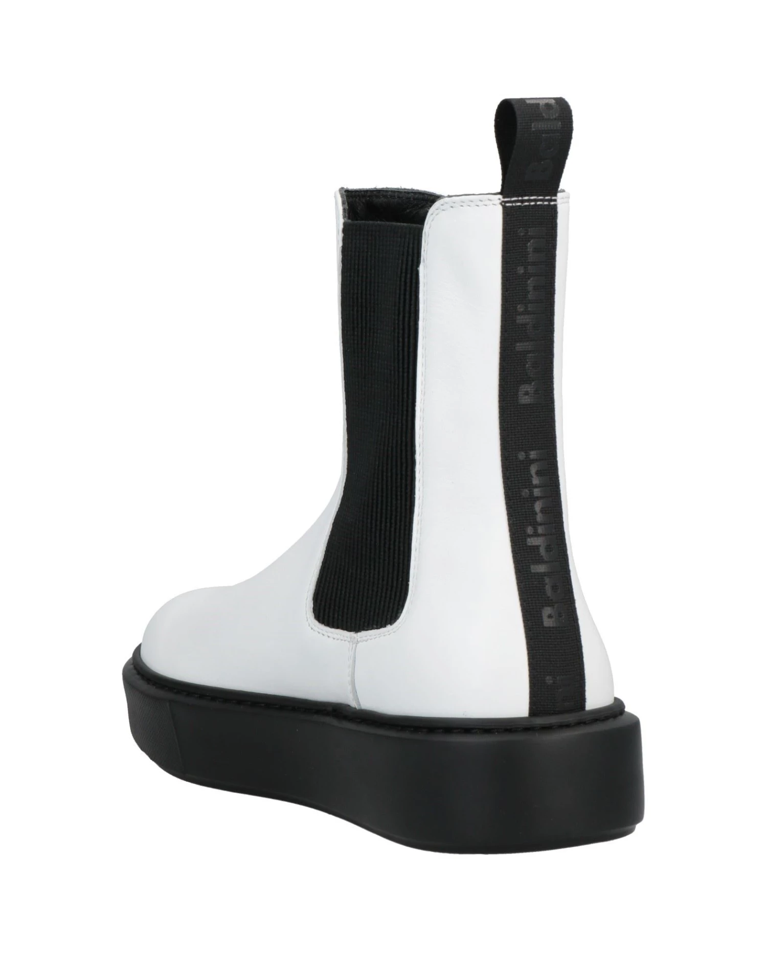 polished leather, brand logo, solid colour with appliqués, leather backing, elasticized gores, round toeline, flat, flatform, contains non-textile parts of animal origin
