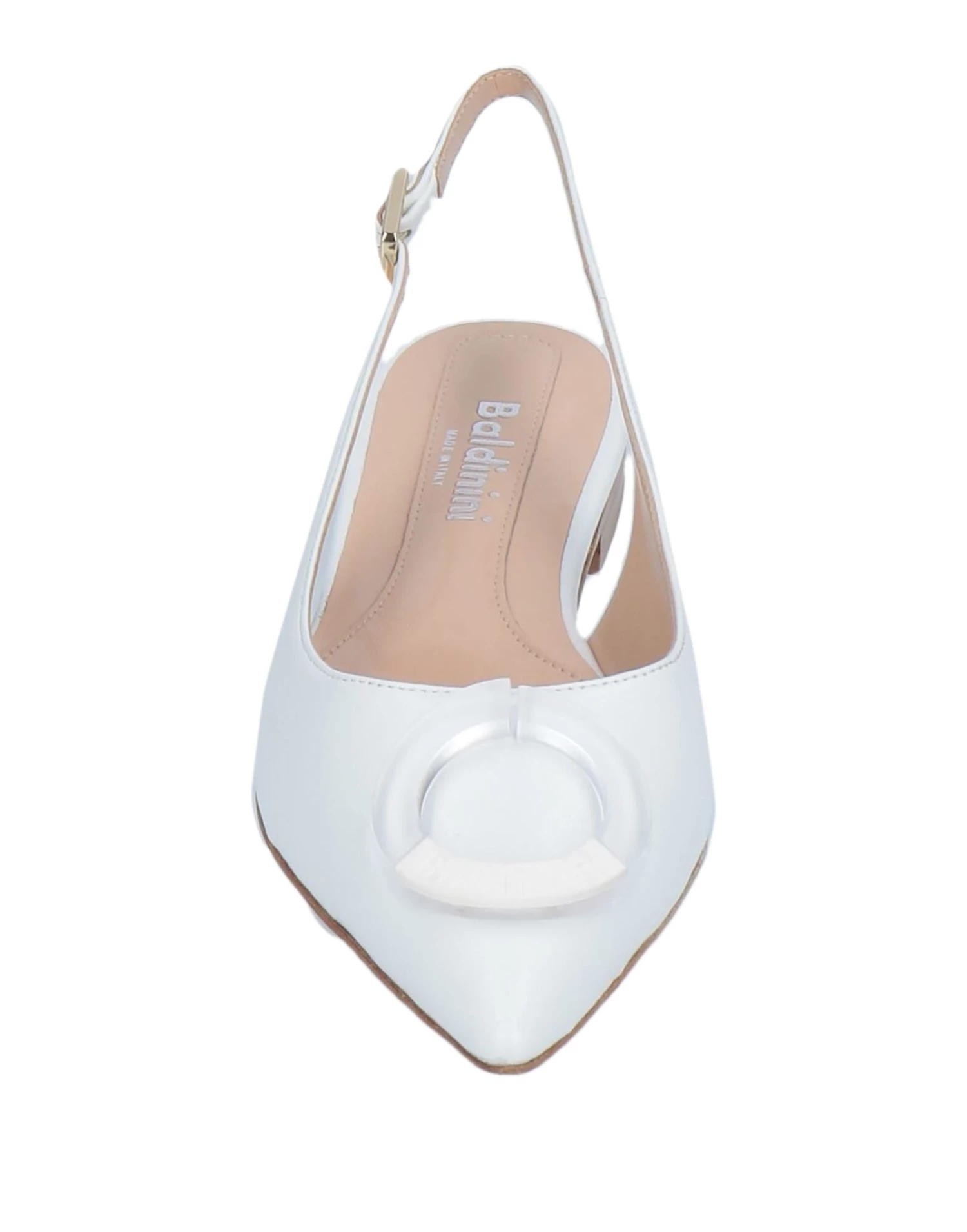 leather, nappa leather, brand logo, solid colour with appliqués, buckle fastening, narrow toeline, flat, leather lining, leather/rubber sole, contains non-textile parts of animal origin