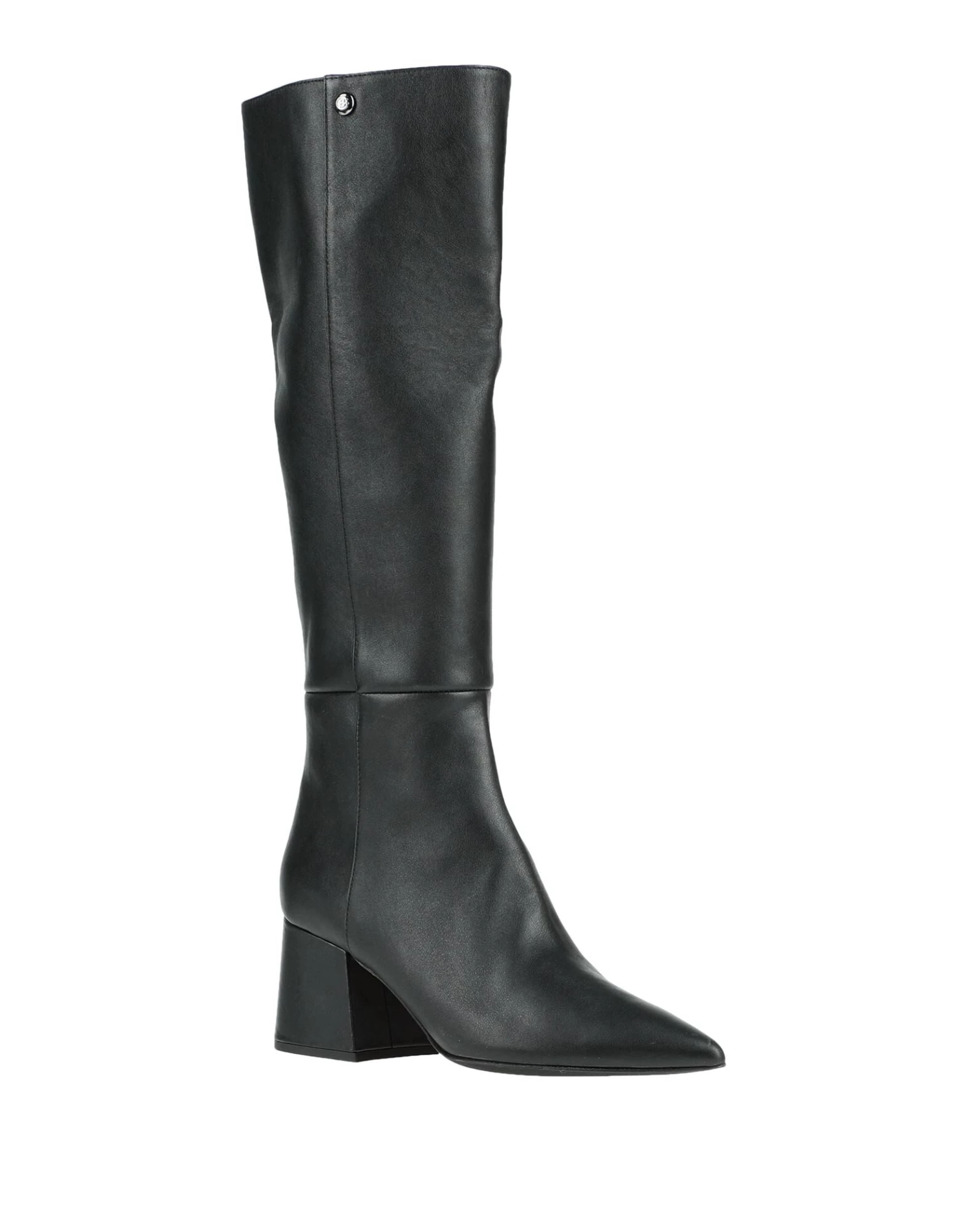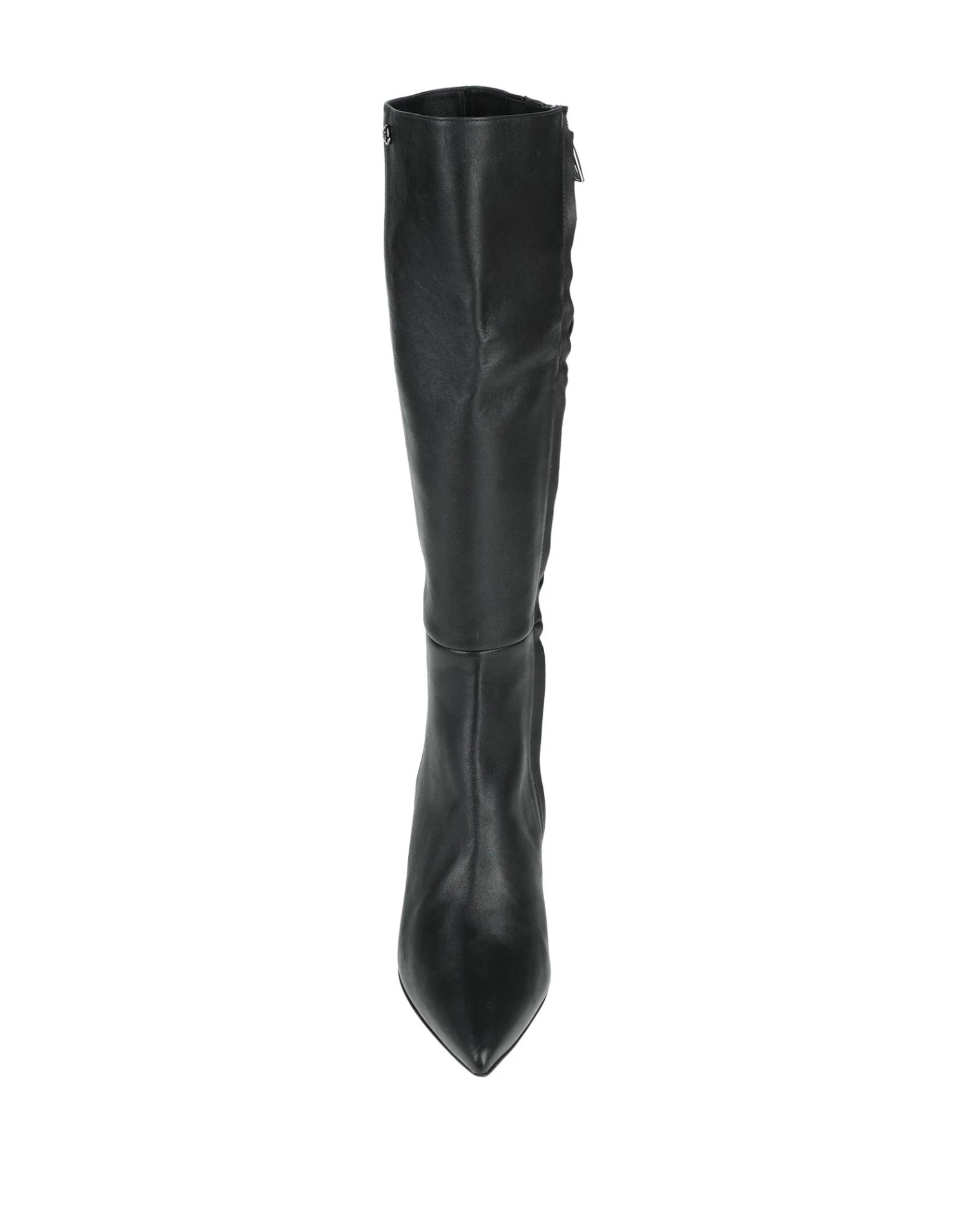 leather, brand logo, solid color, leather backing, zipper closure, narrow toeline, square heel, leather/rubber sole, contains non-textile parts of animal origin