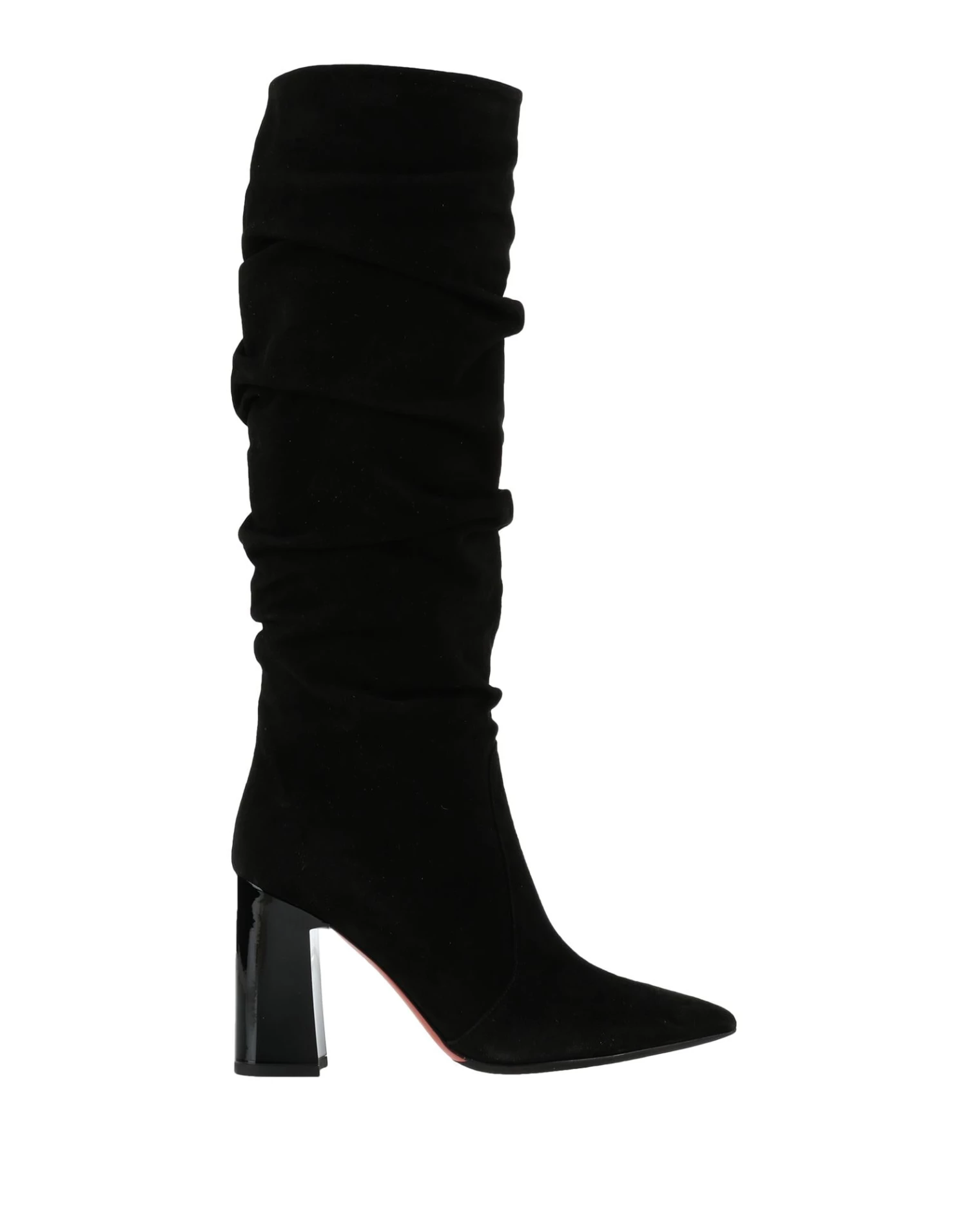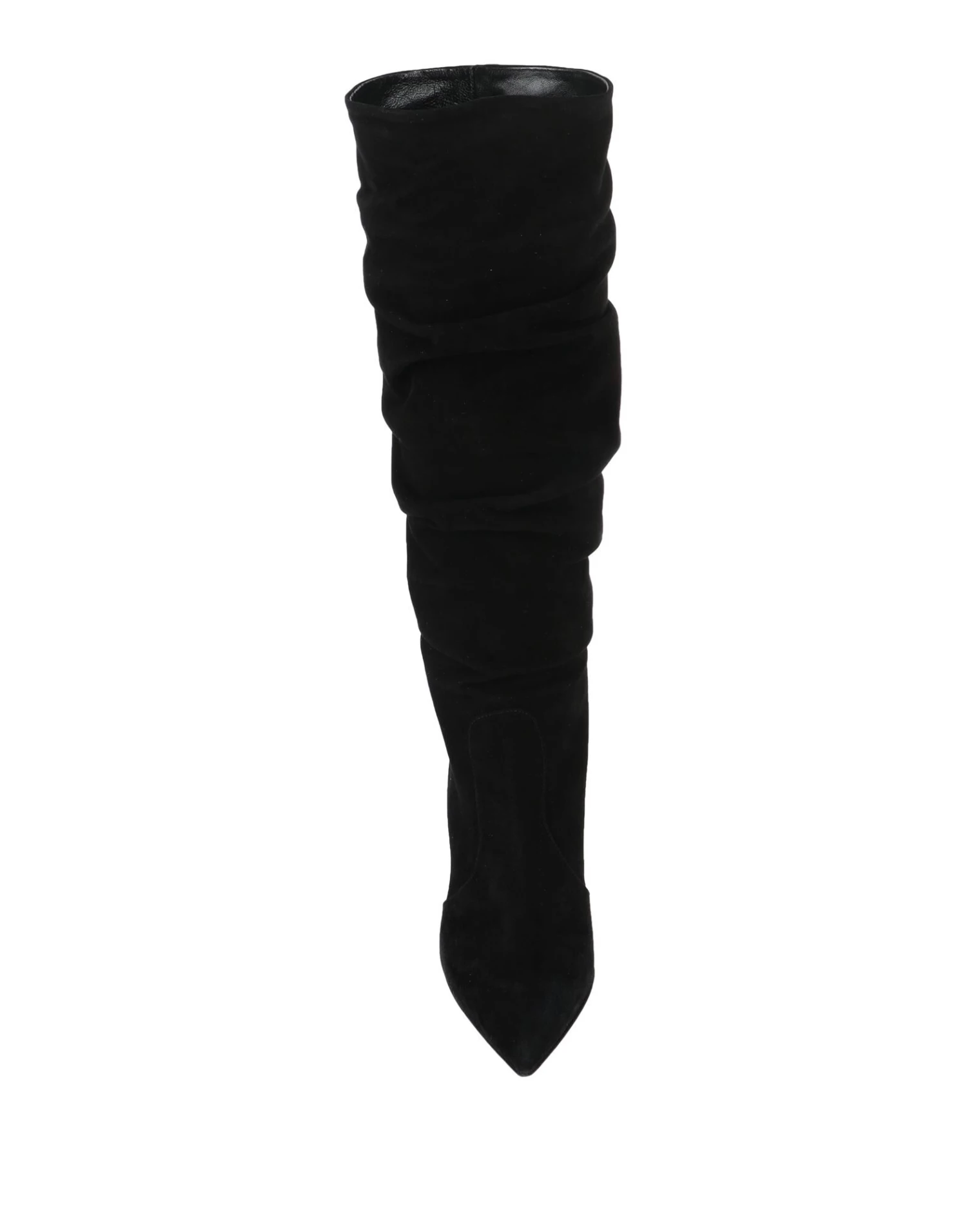 leather, suede effect, brand logo, solid color, leather backing, narrow toeline, square heel, rubber sole, contains non-textile parts of animal origin, nappa leather