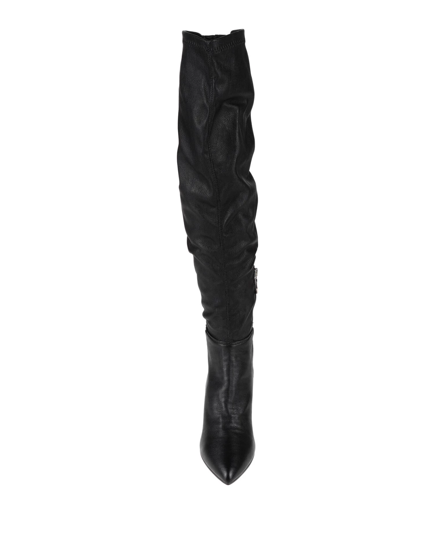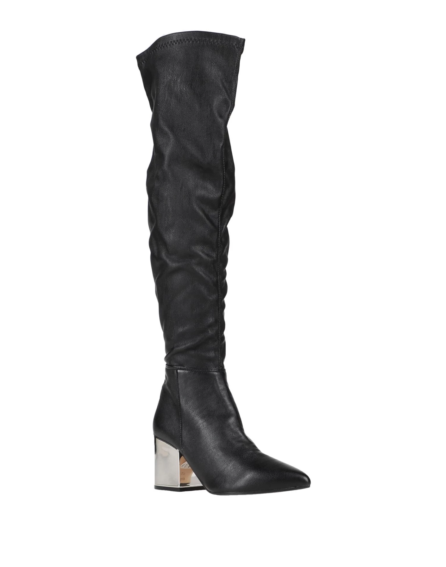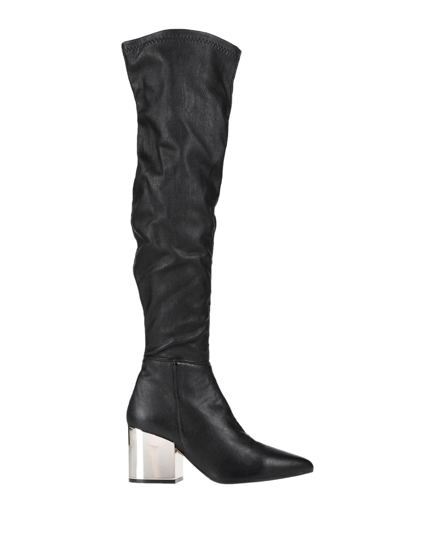 nappa leather, no appliqués, solid color, leather backing, zipper closure, narrow toeline, square heel, metal heel, leather/rubber sole, contains non-textile parts of animal origin