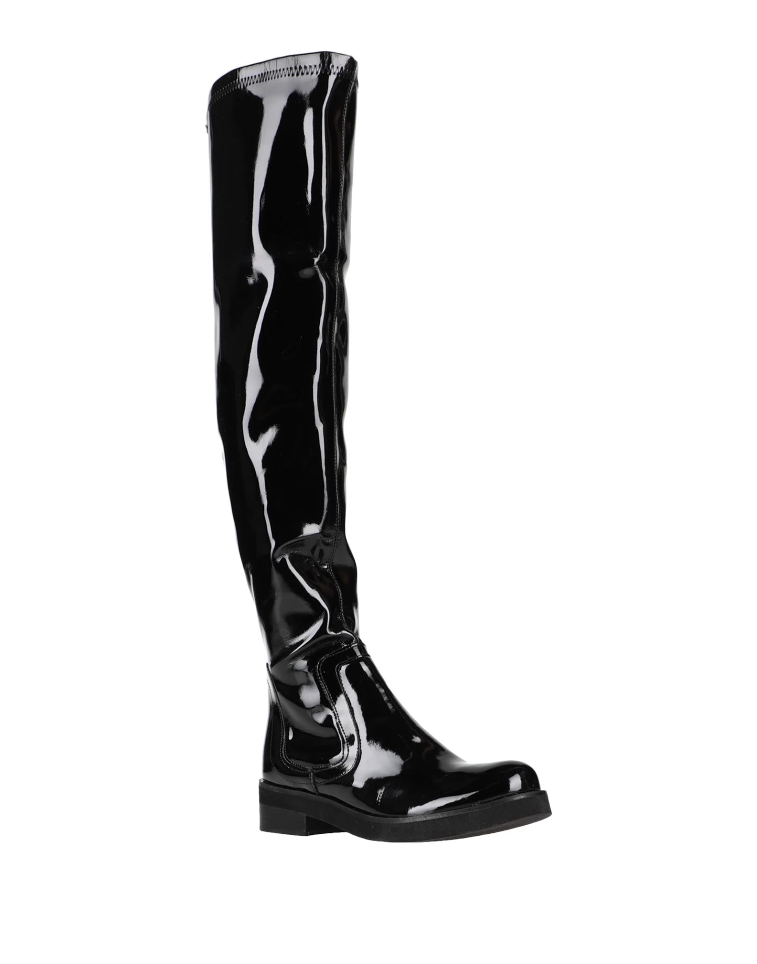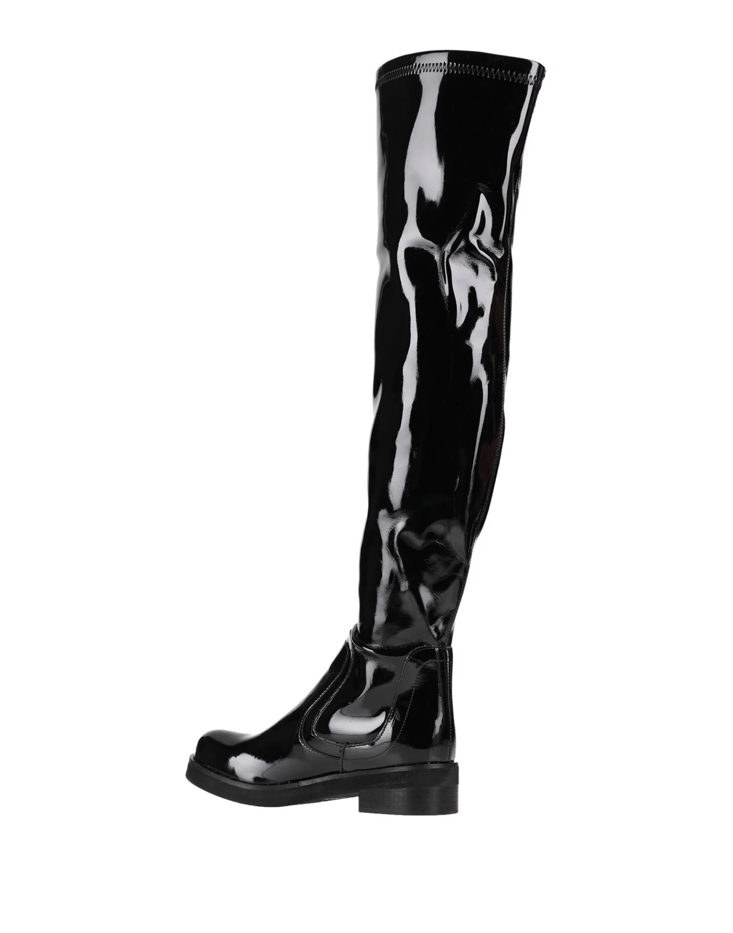 coated fabric, varnished effect, no appliqués, solid color, round toeline, square heel, leather backing, rubber sole, contains non-textile parts of animal origin