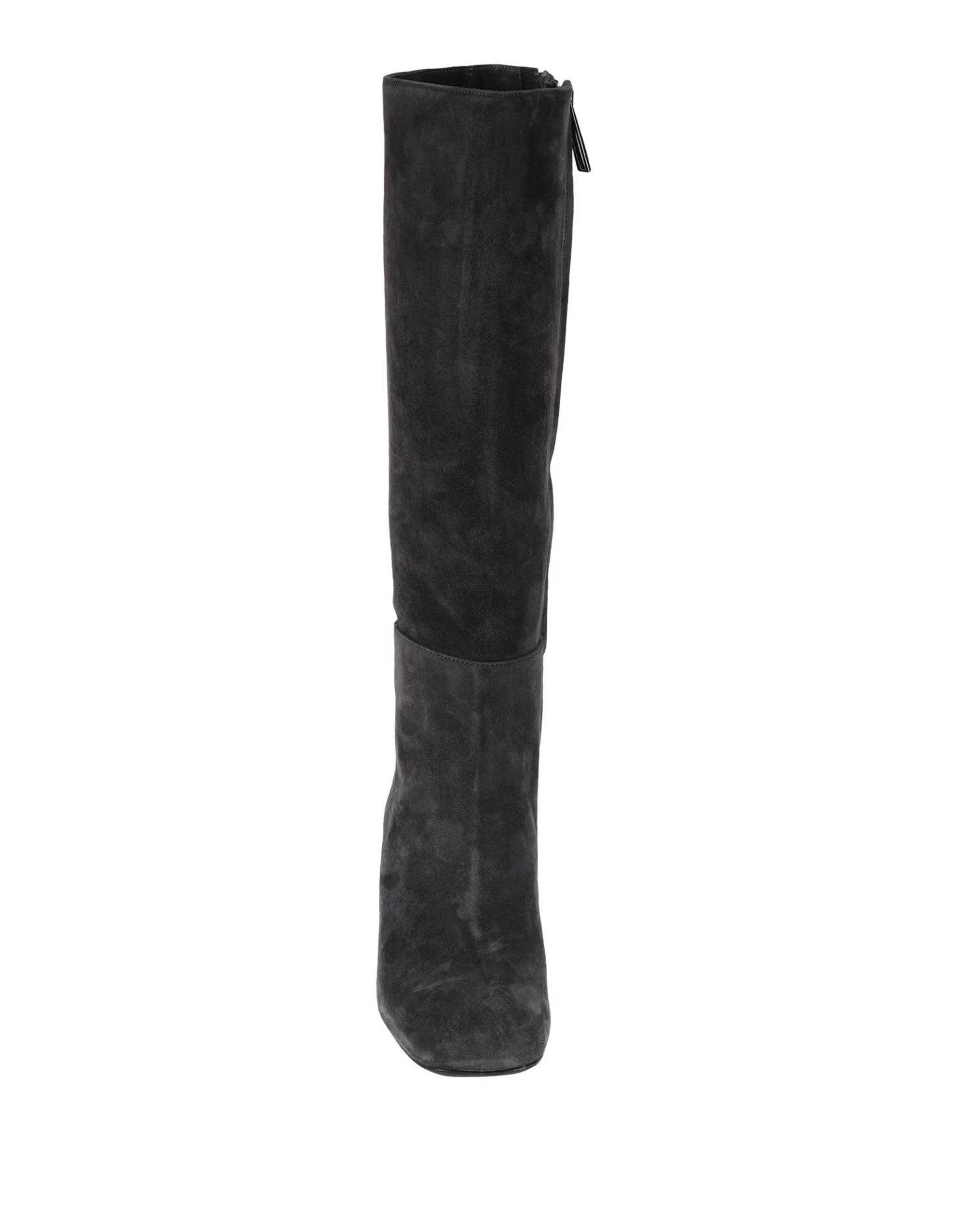 leather, suede effect, no appliqués, solid color, leather backing, zipper closure, square toeline, square heel, leather sole, contains non-textile parts of animal origin