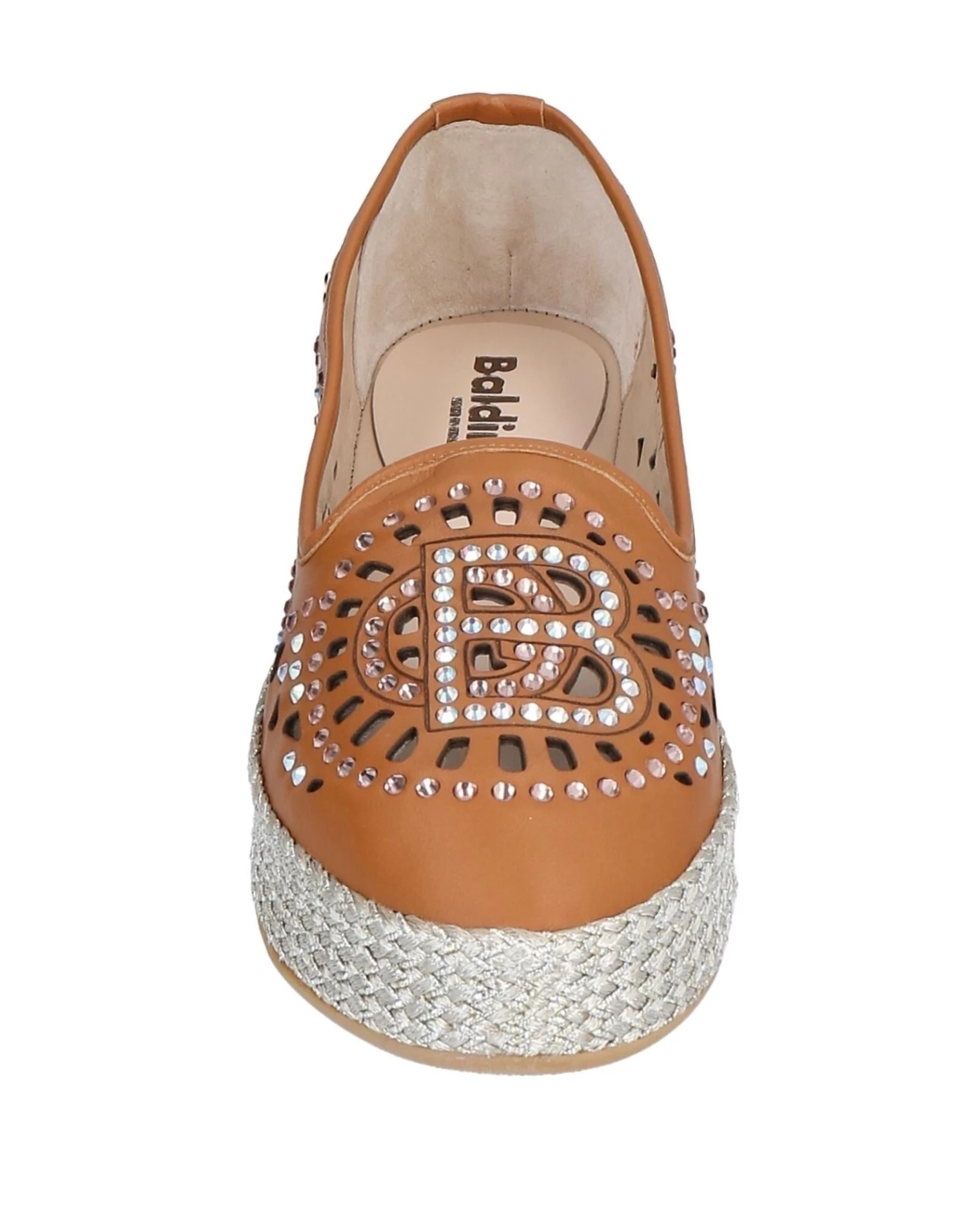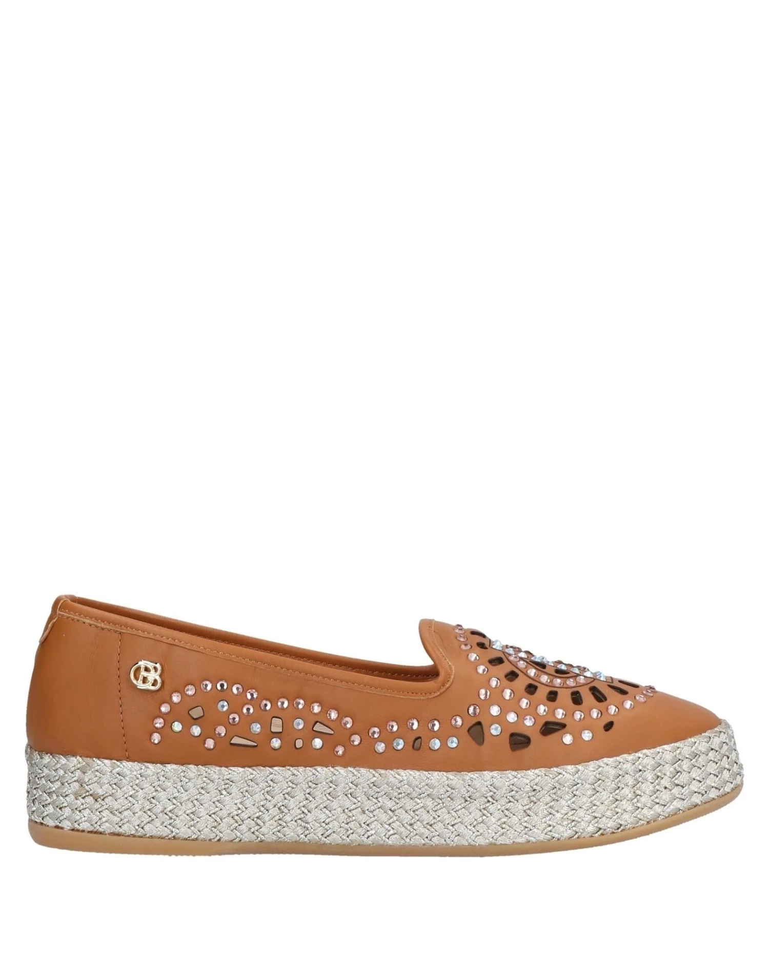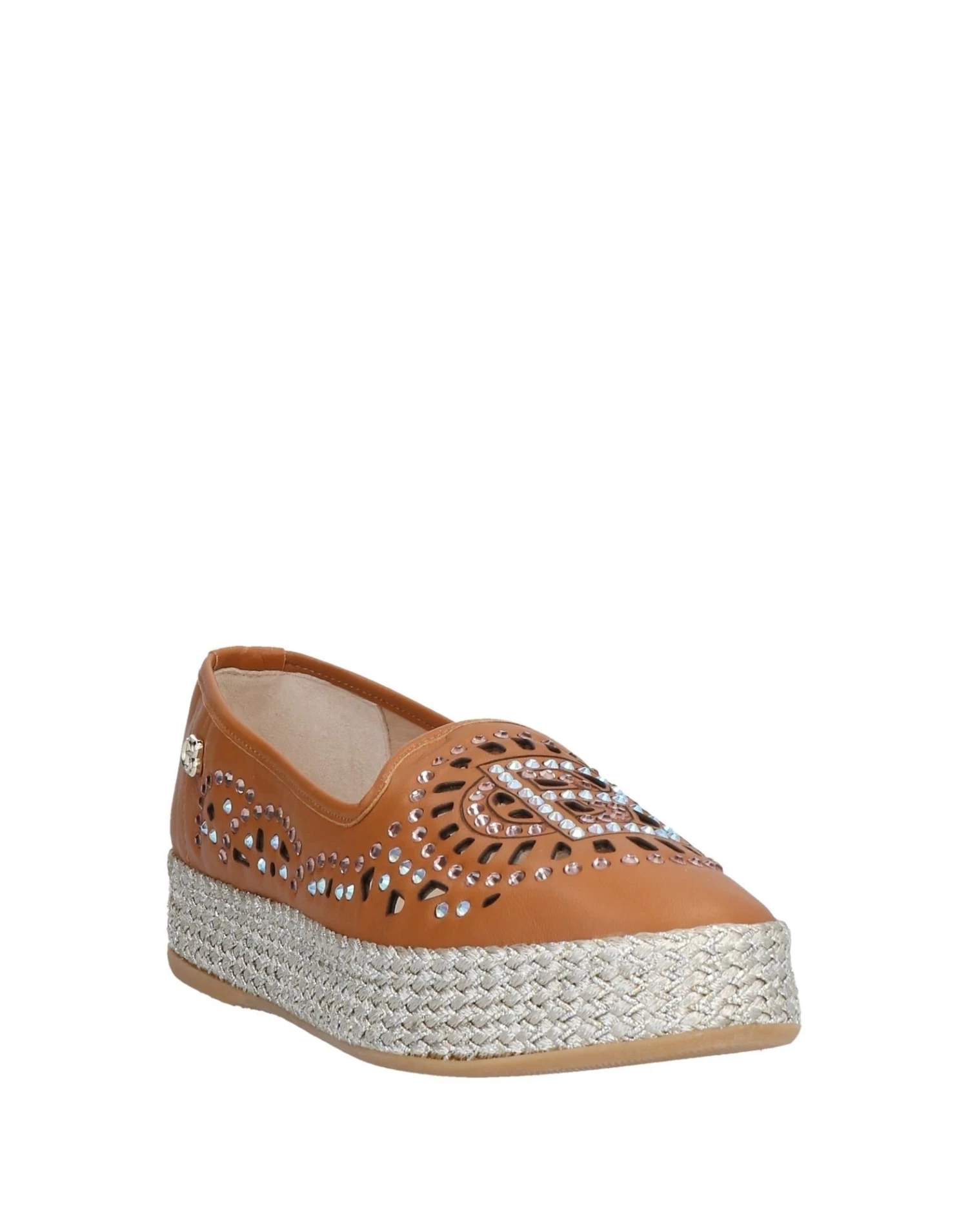 leather, openwork, rhinestones, brand logo, solid colour with appliqués, round toeline, flatform, rope heel, leather lining, rubber sole, contains non-textile parts of animal origin