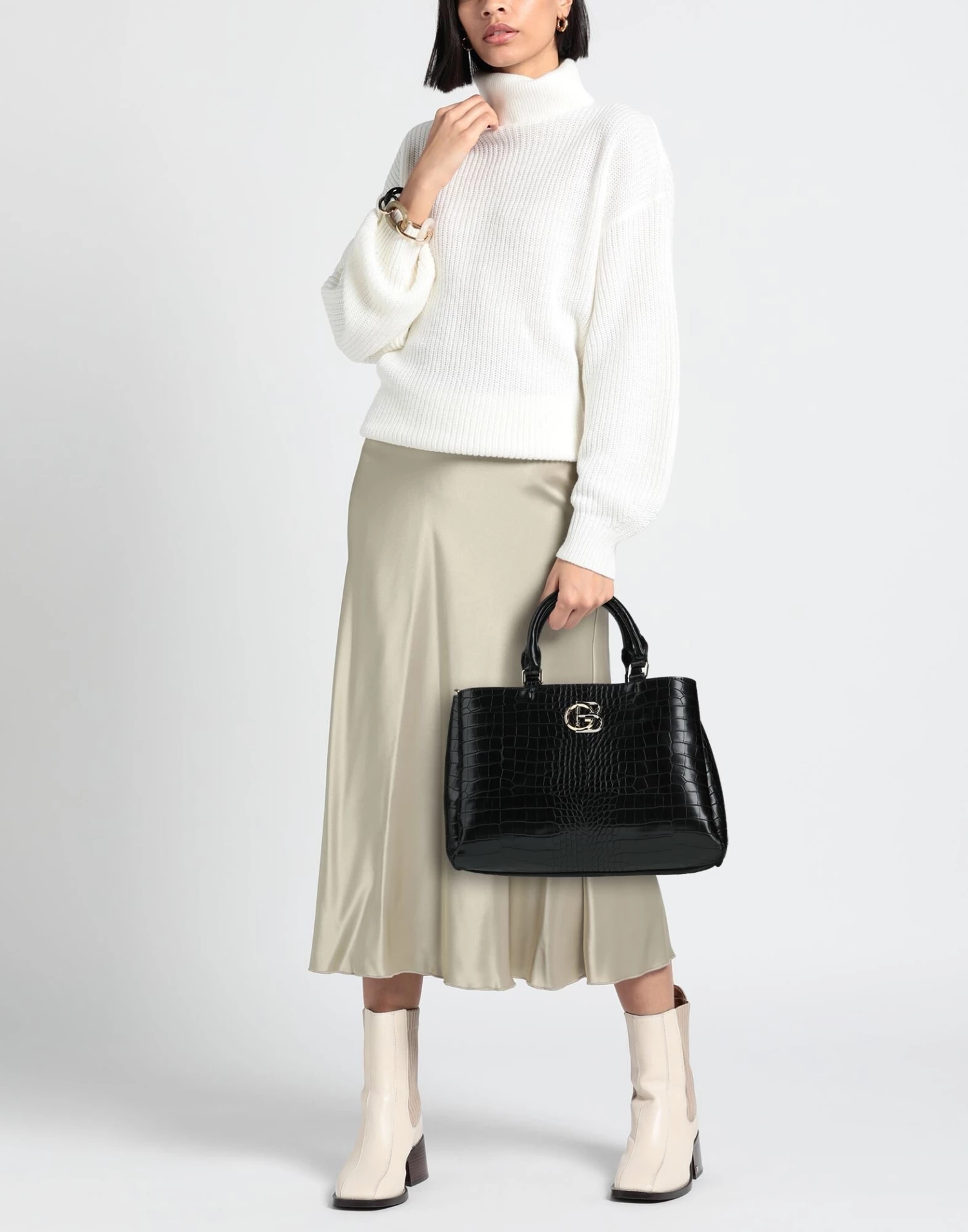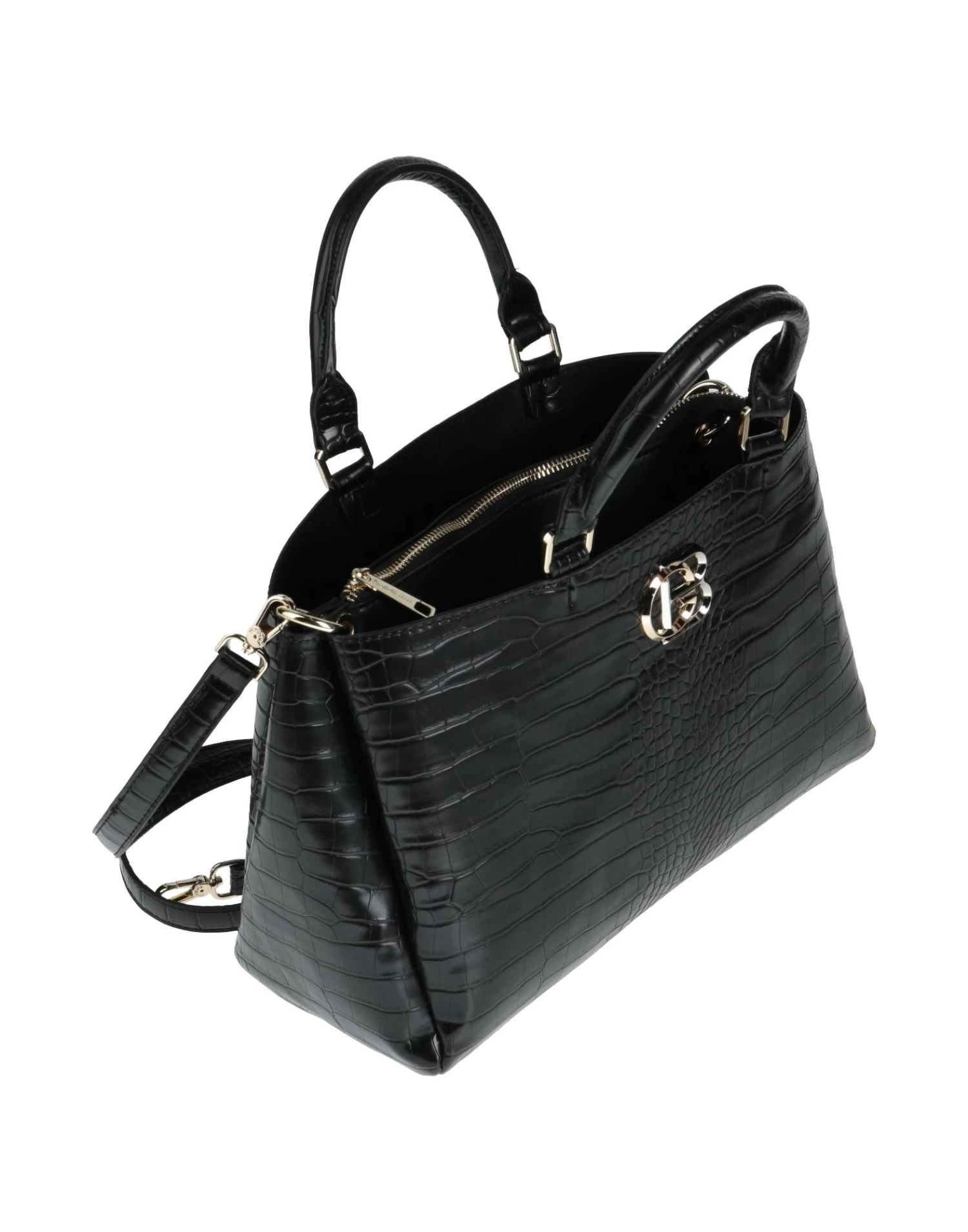 large, coated fabric, crocodile print, brand logo, solid color, unlined, internal zip pocket, double handle, detachable shoulder strap, daytime, shopper bag