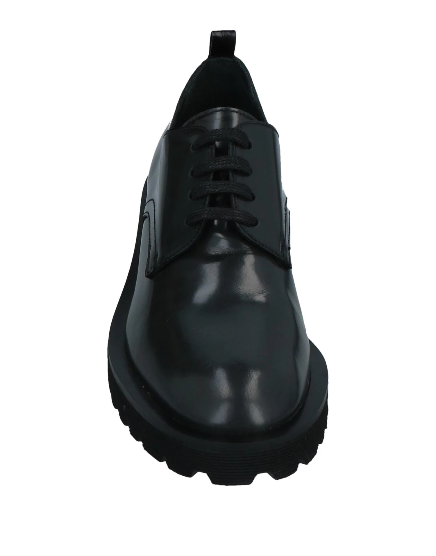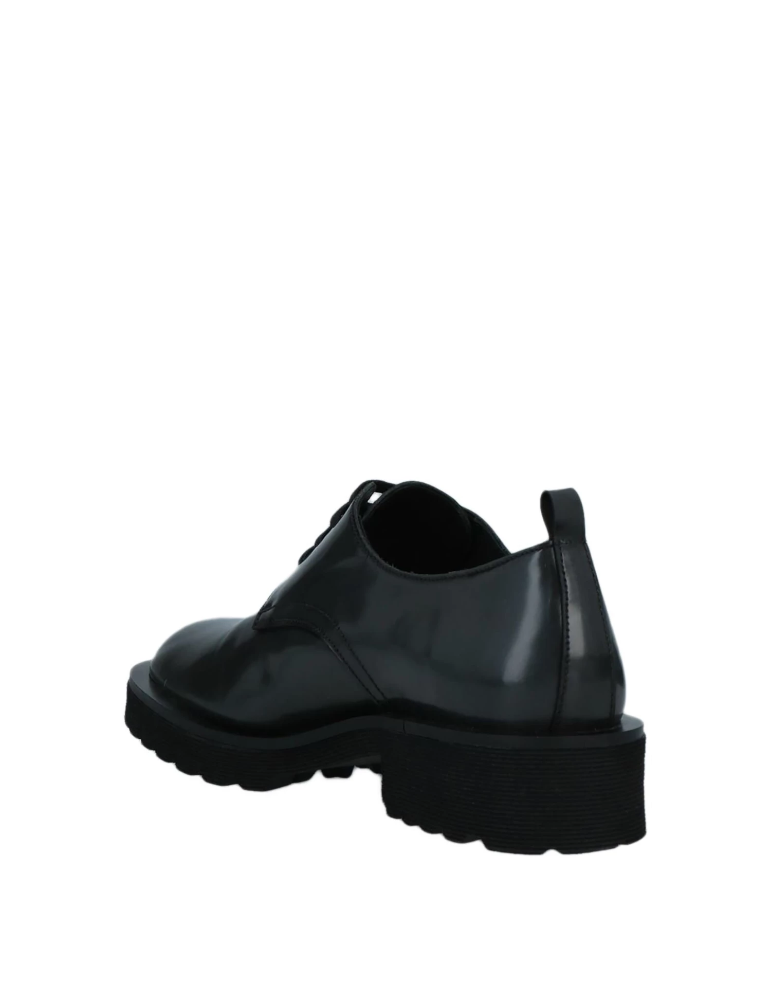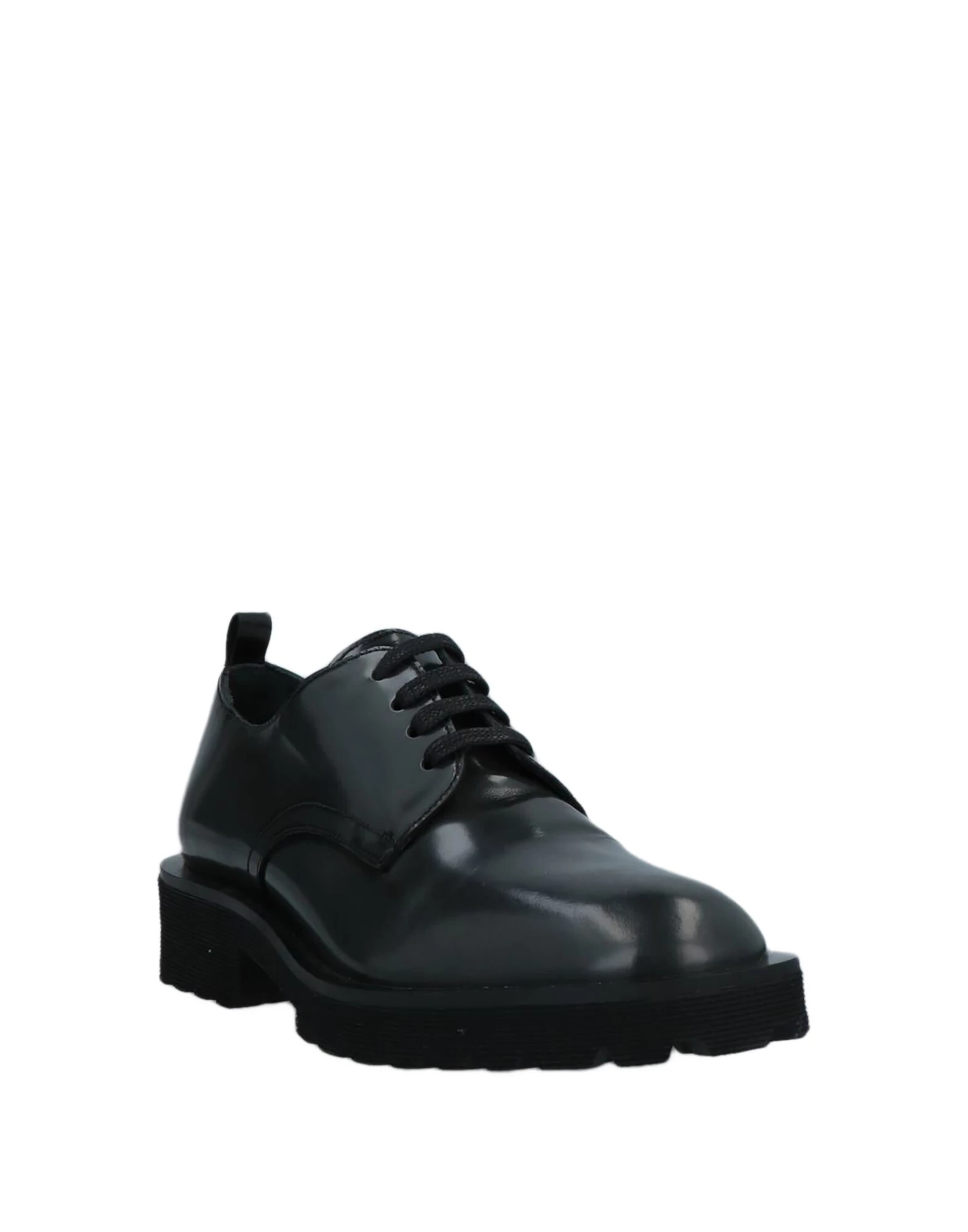 polished leather, no appliqués, solid color, leather backing, round toeline, square heel, rubber sole, contains non-textile parts of animal origin, chunky lace-ups