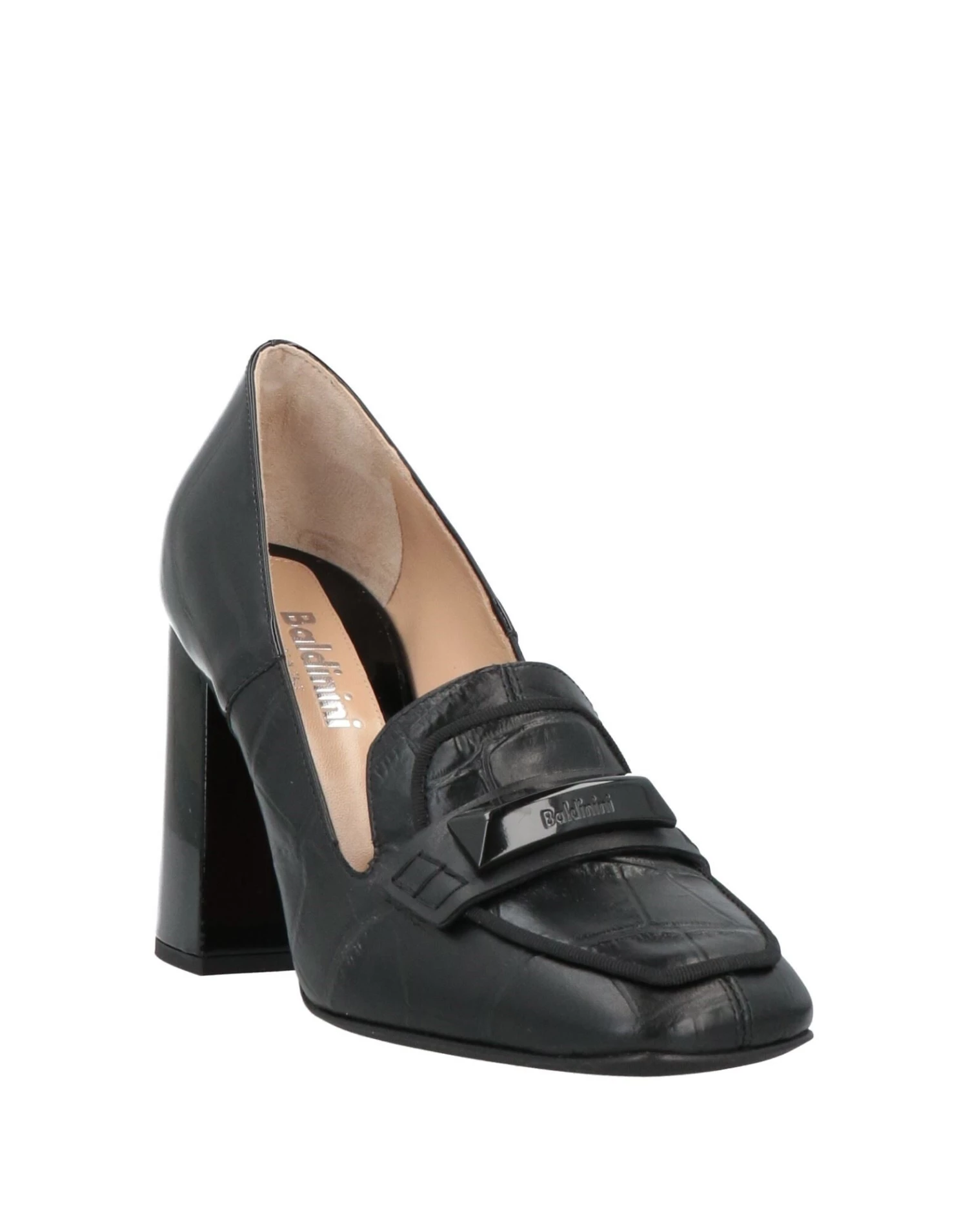 leather, varnished effect, brand logo, metal applications, solid color, square toeline, square heel, covered heel, rubber sole, leather backing, contains non-textile parts of animal origin