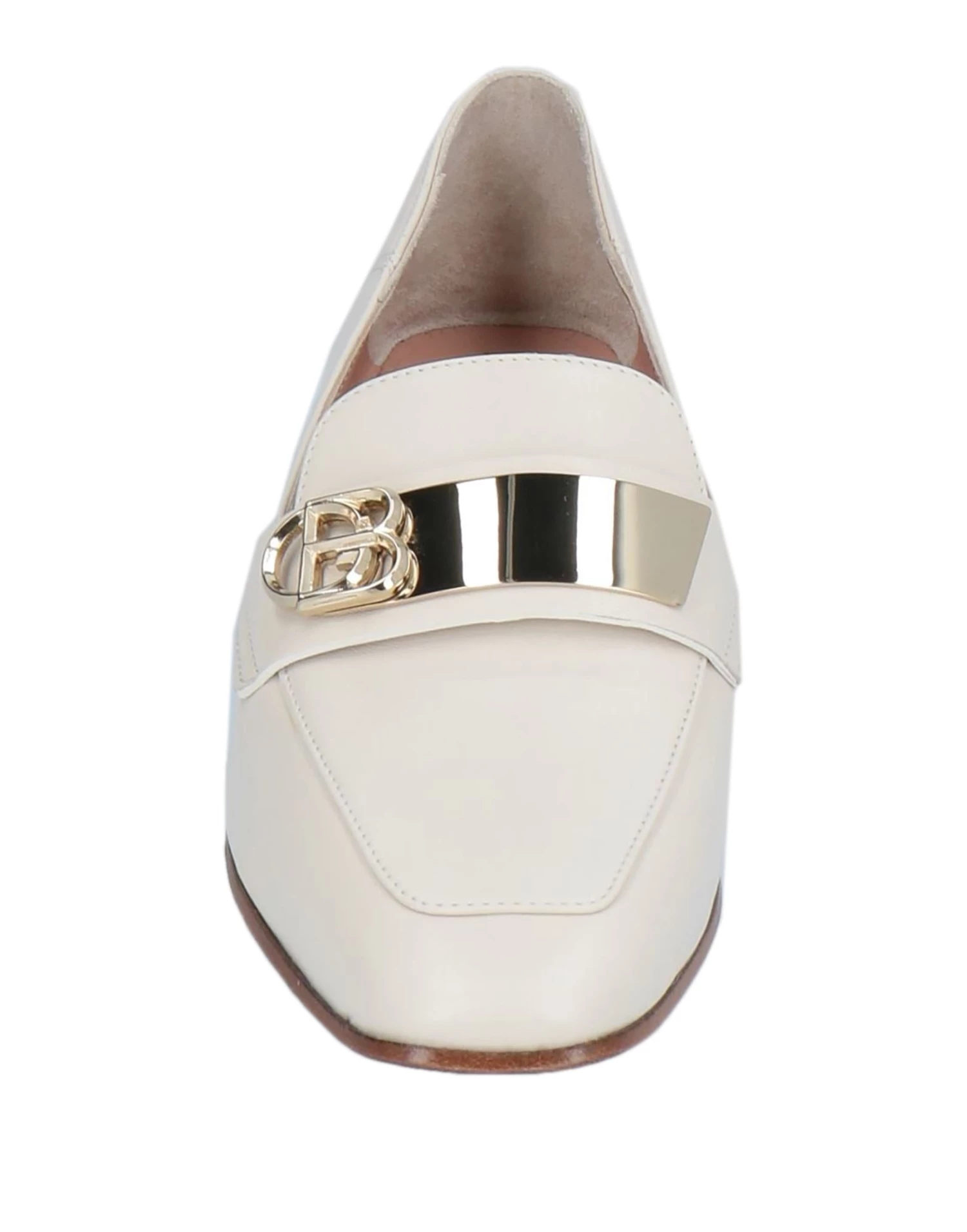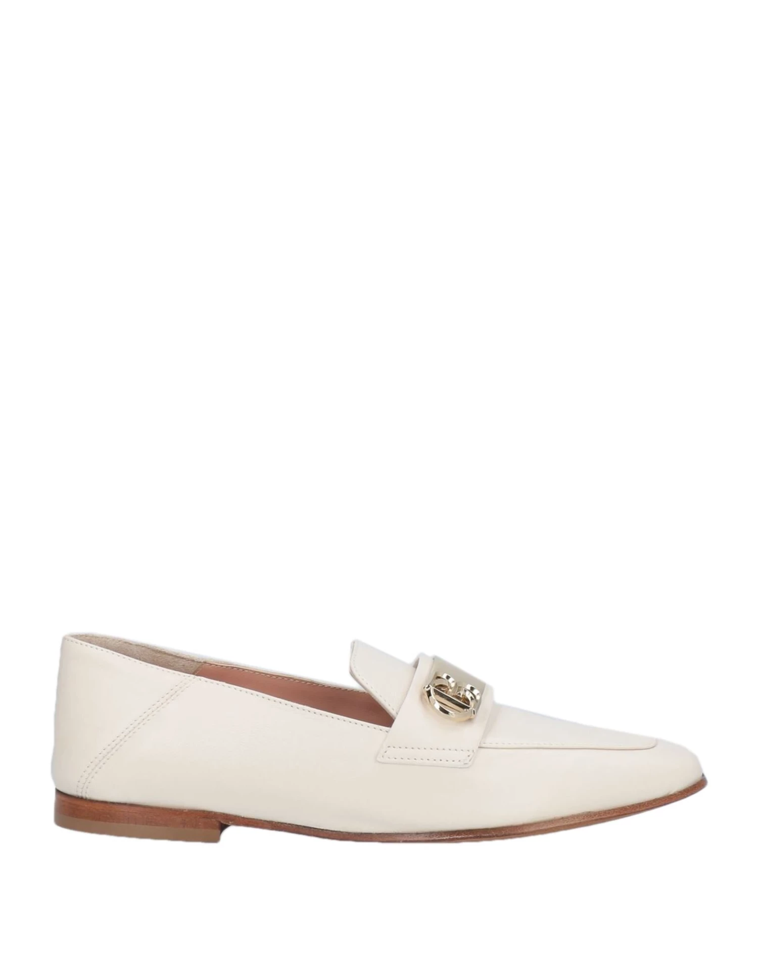 nappa leather, metal applications, brand logo, solid colour with appliqués, round toeline, flat, leather lining, leather sole, contains non-textile parts of animal origin