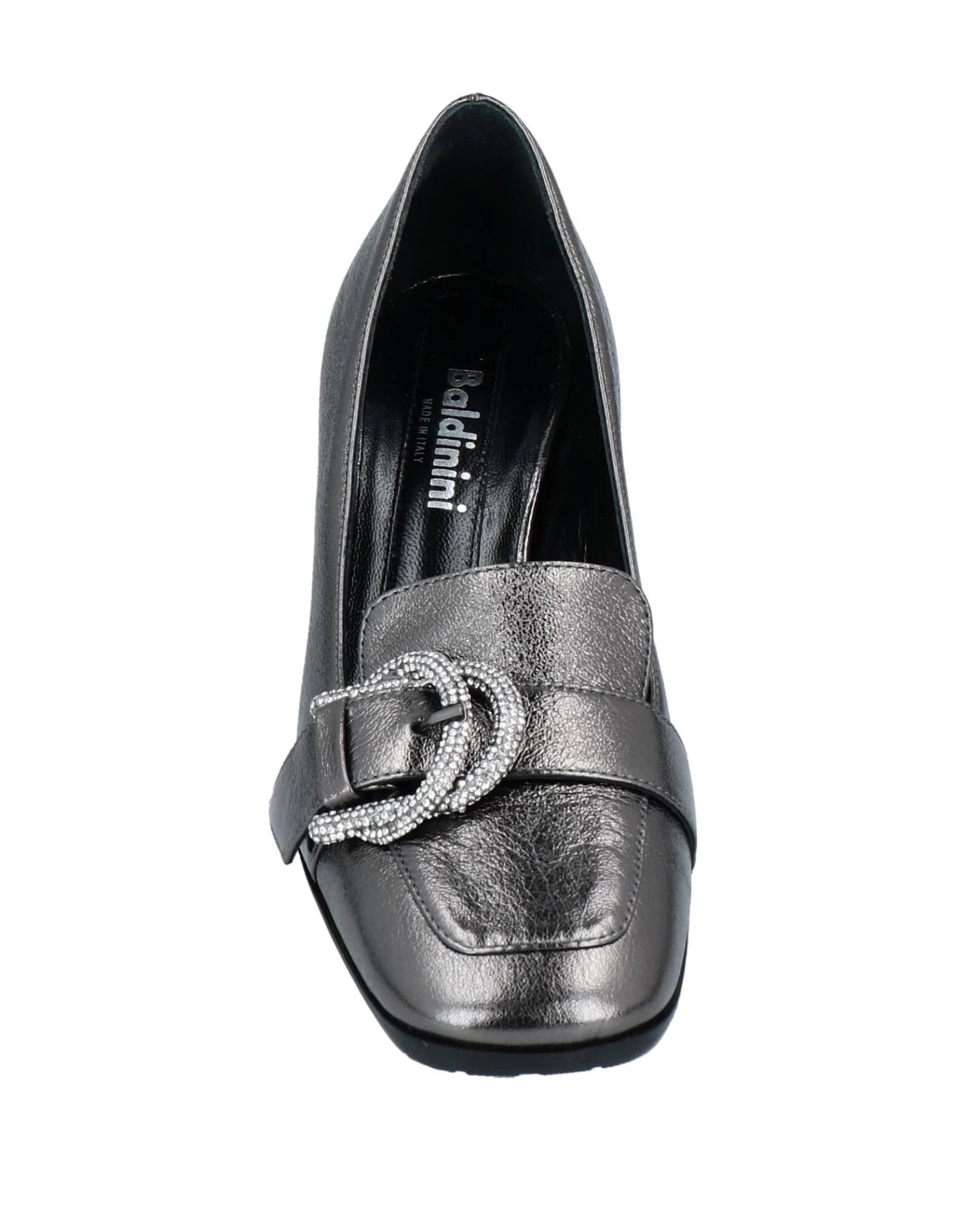 leather, laminated effect, rhinestones, solid colour with appliqués, leather backing, square toeline, square heel, rubber sole, contains non-textile parts of animal origin