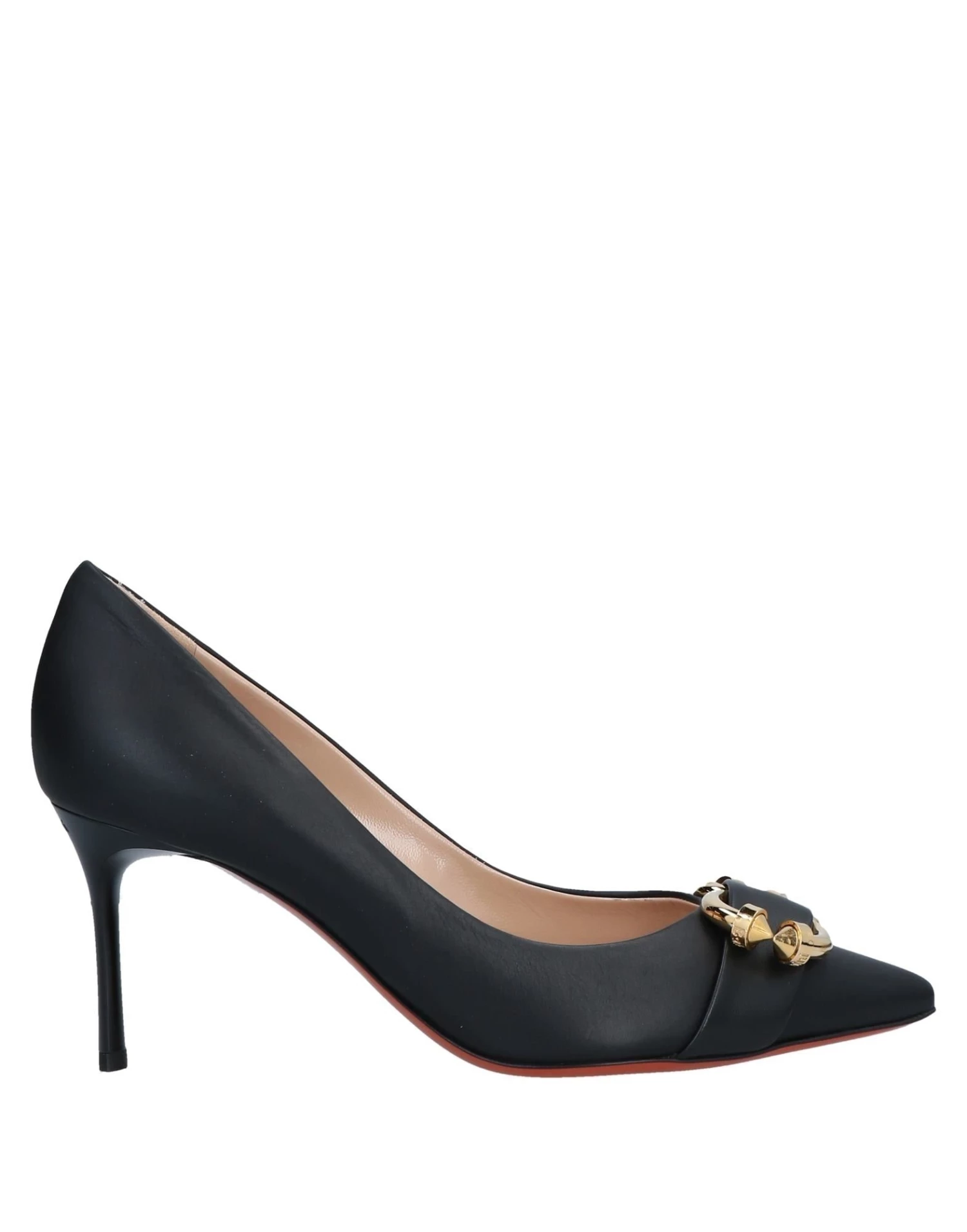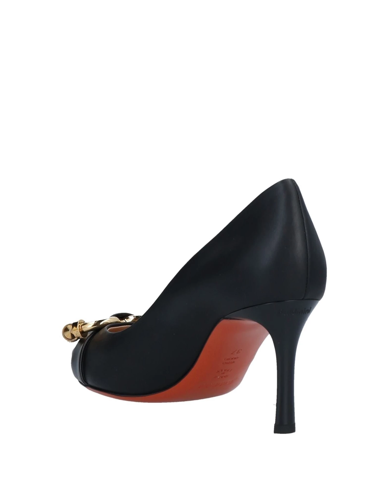 leather, nappa leather, metal applications, brand logo, solid colour with appliqués, narrow toeline, stiletto heel, leather lining, leather sole, contains non-textile parts of animal origin