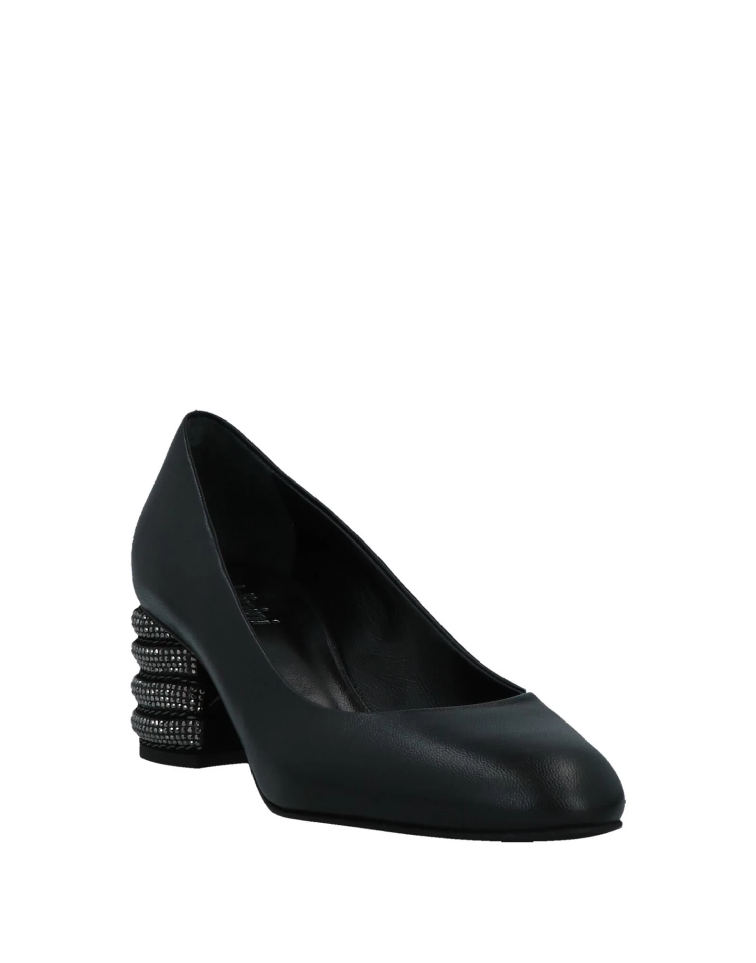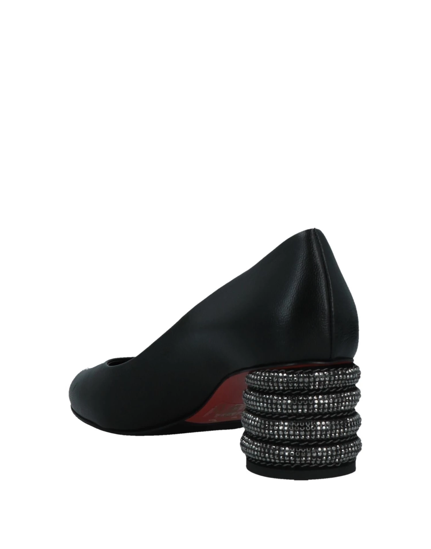 no appliqués, solid color, leather backing, round toeline, geometric heel, leather/rubber sole, contains non-textile parts of animal origin