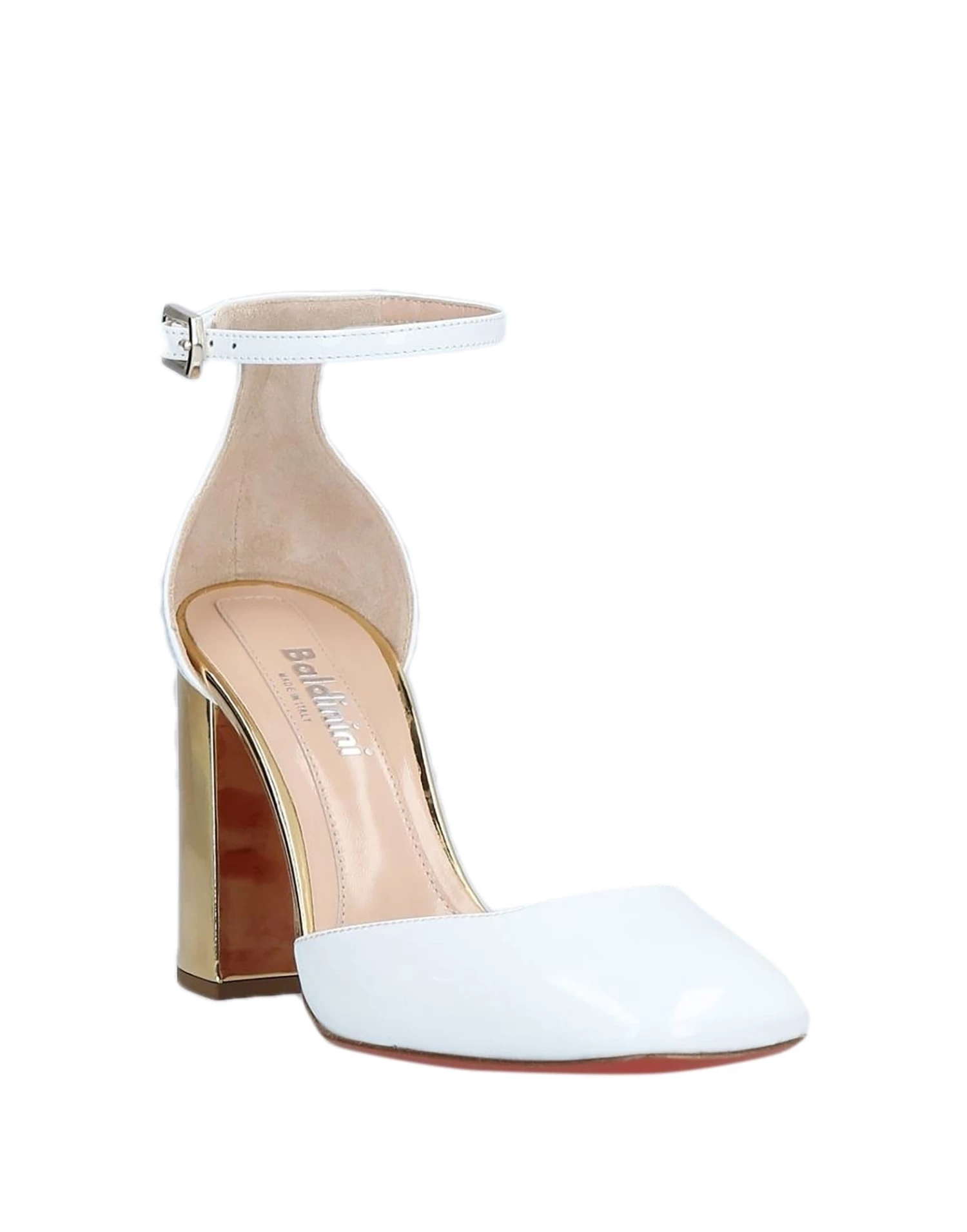 leather, varnished effect, brand logo, solid color, buckling ankle strap closure, square toeline, square heel, leather lining, leather sole, contains non-textile parts of animal origin