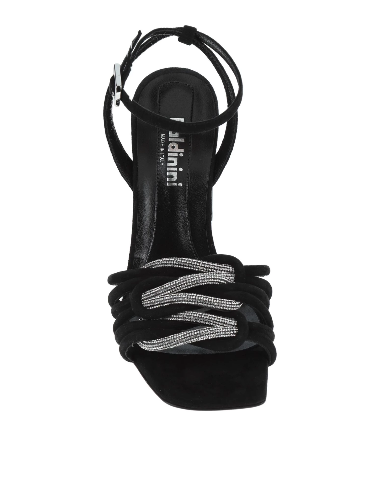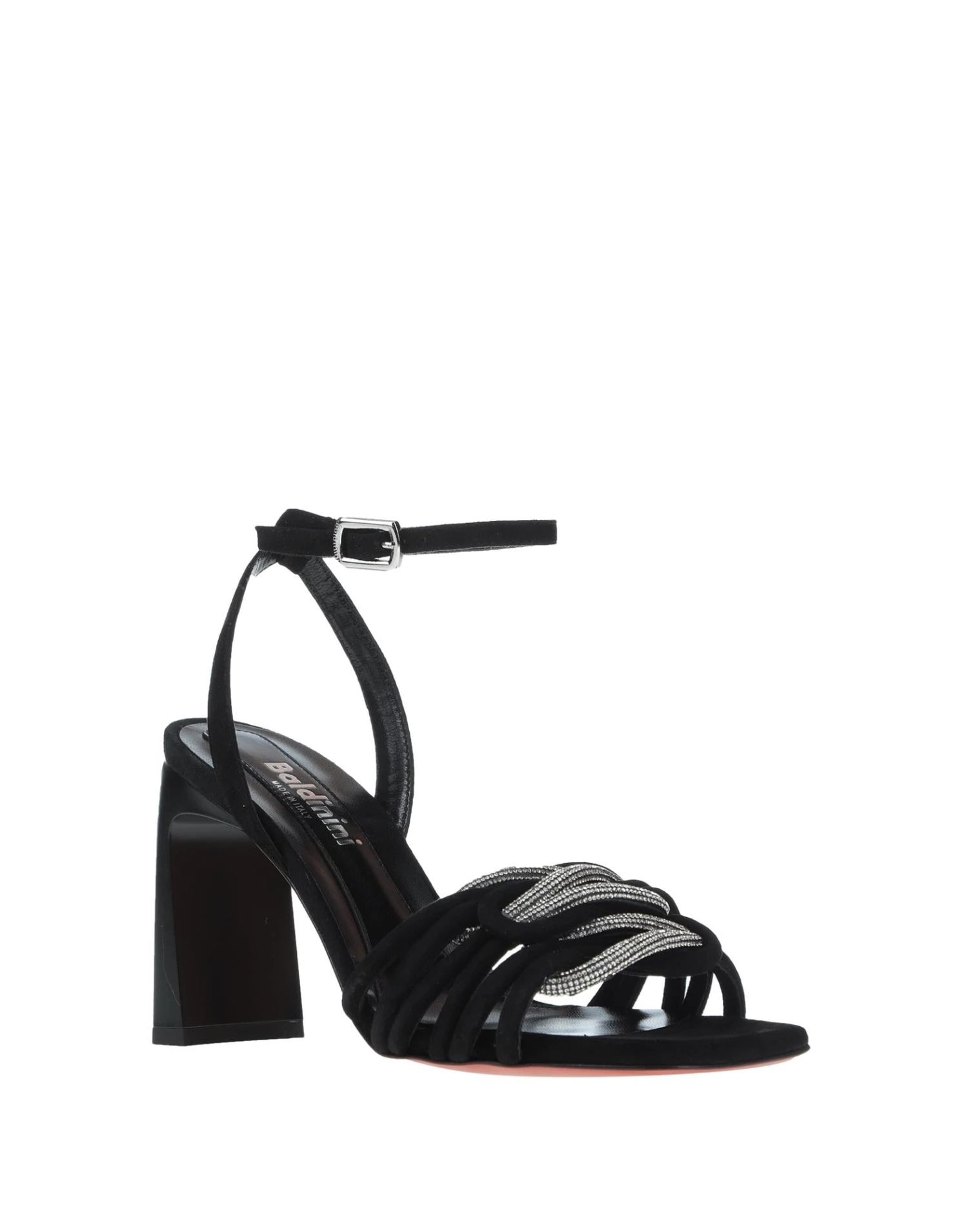 leather, suede effect, rhinestones, solid colour with appliqués, buckling ankle strap closure, square toeline, square heel, covered heel, leather lining, leather sole, contains non-textile parts of animal origin
