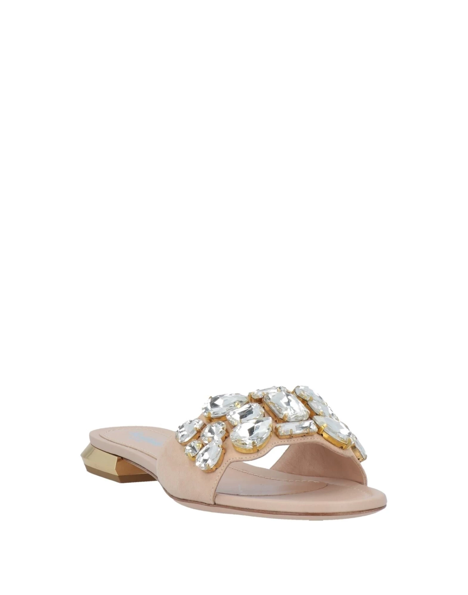 leather, nubuck, rhinestones, solid colour with appliqués, round toeline, flat, leather lining, leather sole, contains non-textile parts of animal origin