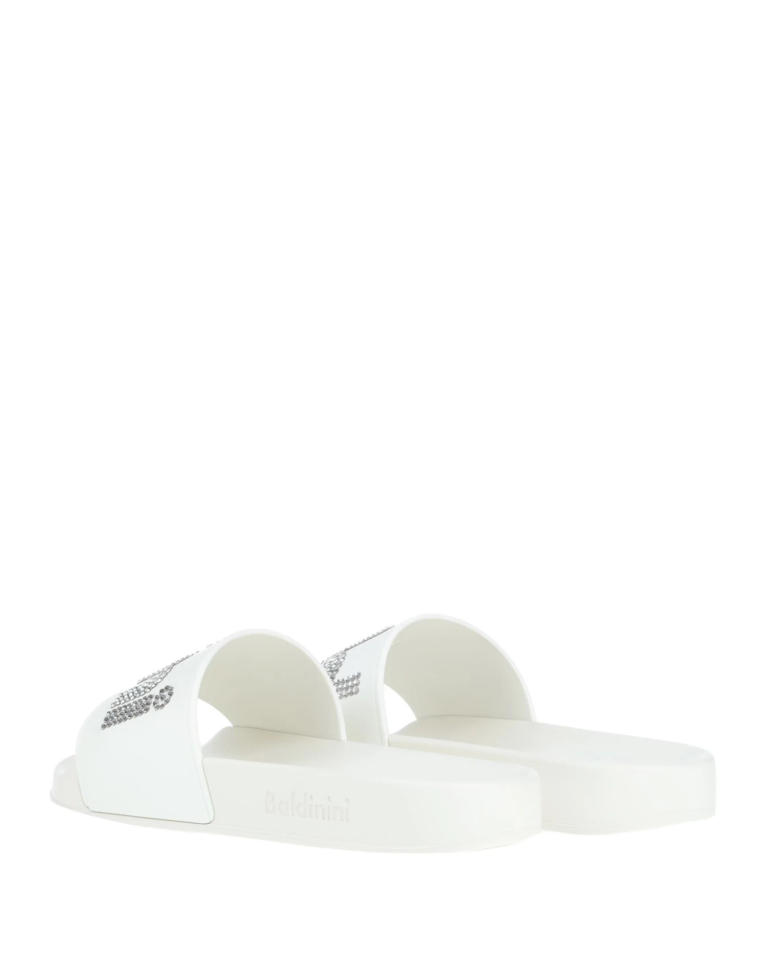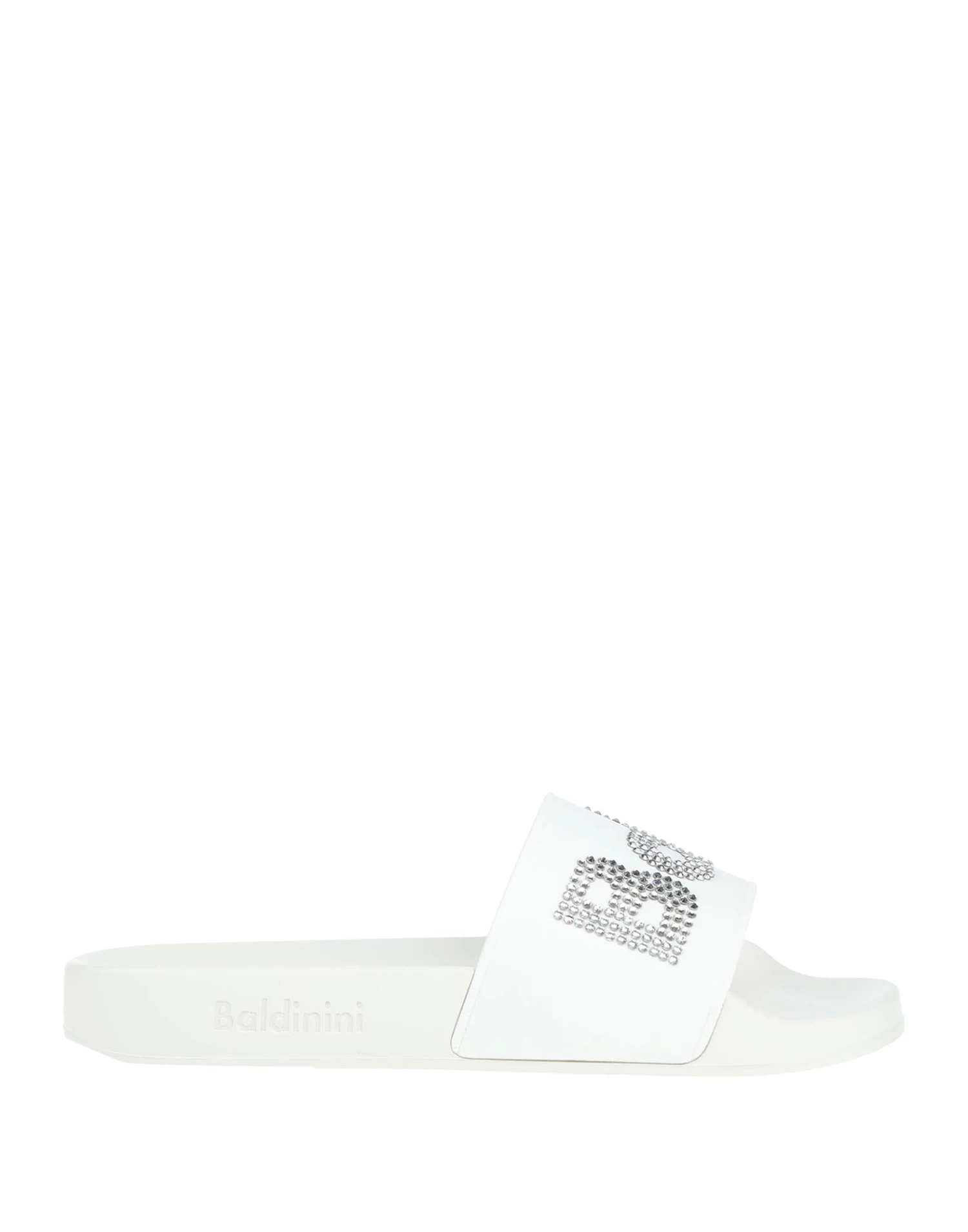 brand logo, crystals, solid colour with appliqués, round toeline, flatform, rubber wedge, rubber lining, rubber cleated sole