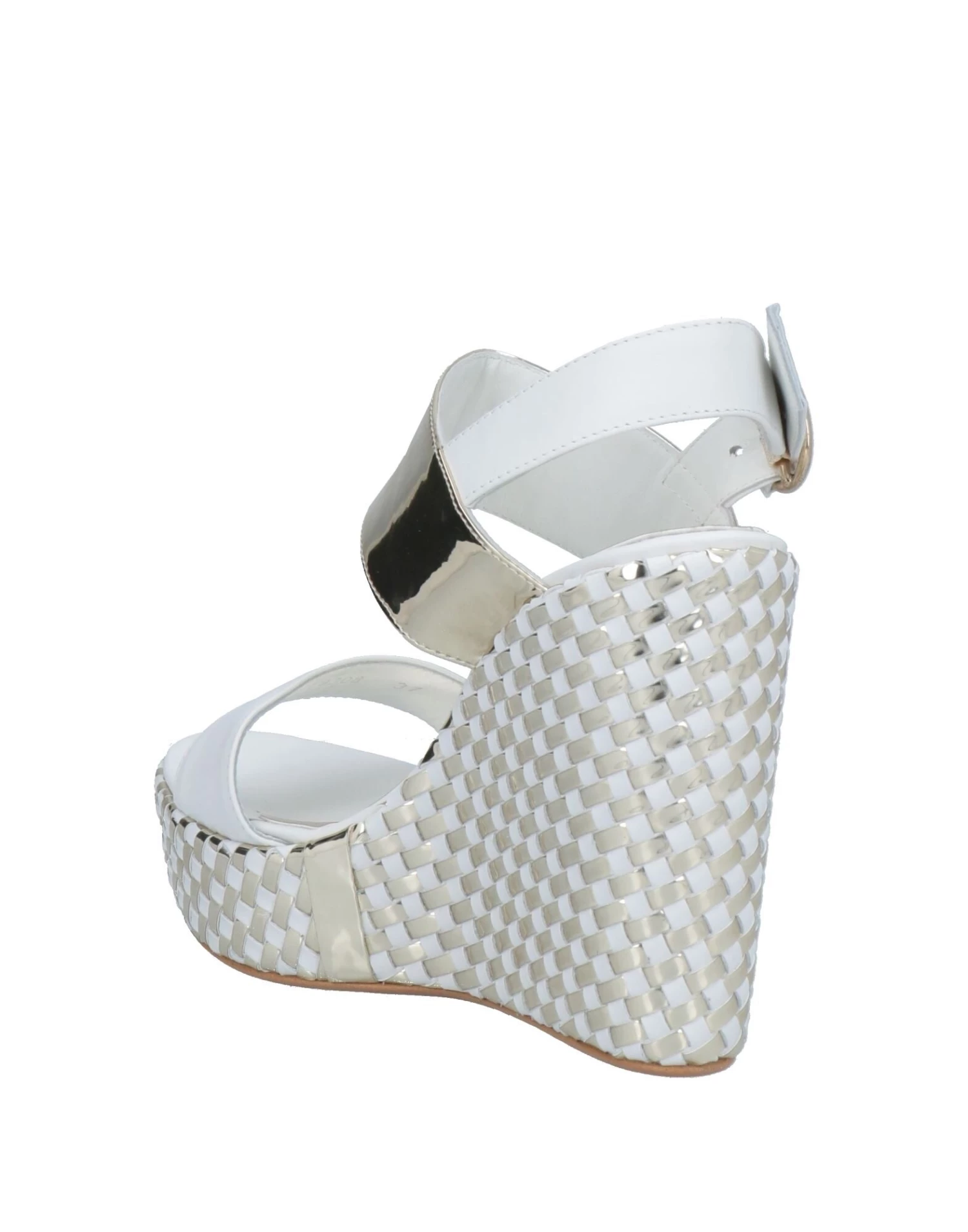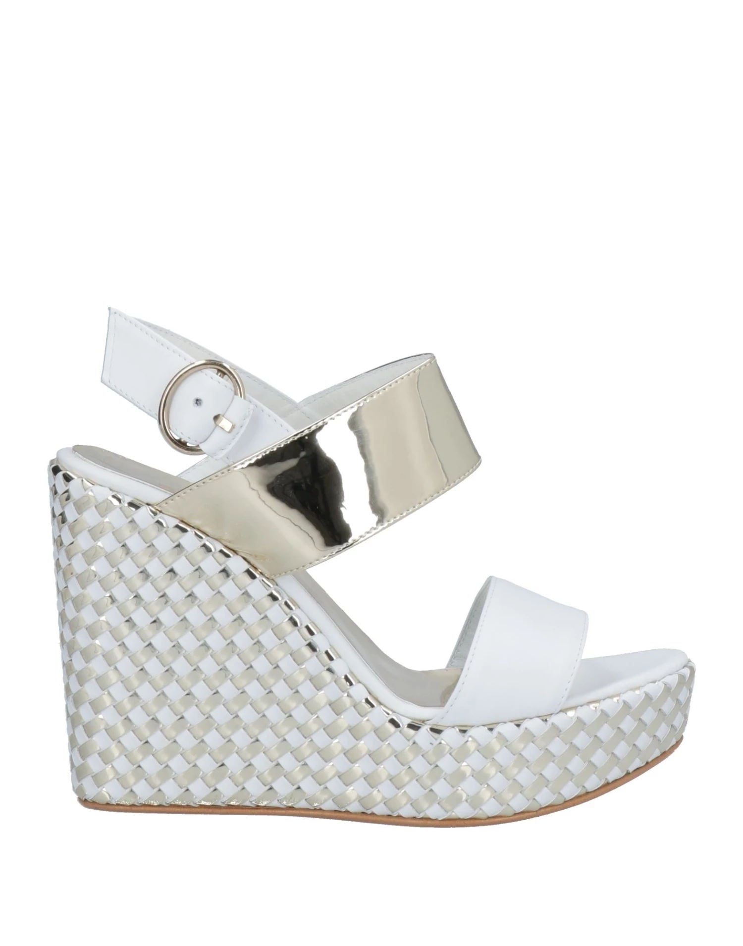 laminated effect, no appliqués, two-tone, leather backing, buckle fastening, narrow toeline, wedge heel, rubber cleated sole, contains non-textile parts of animal origin