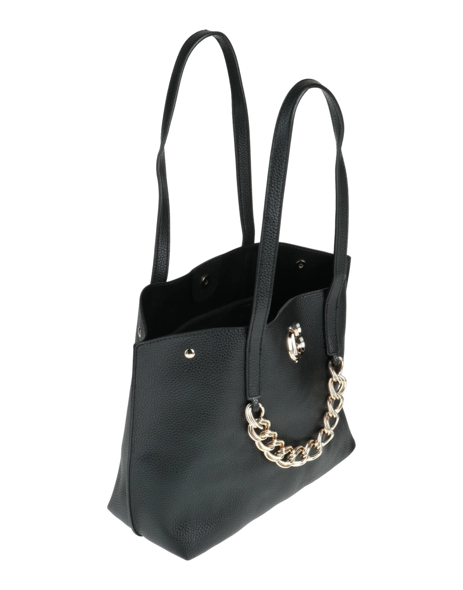 maxi, coated fabric, metal applications, brand logo, solid colour with appliqués, unlined, snap buttons fastening, double handle, internal zip pocket, daytime