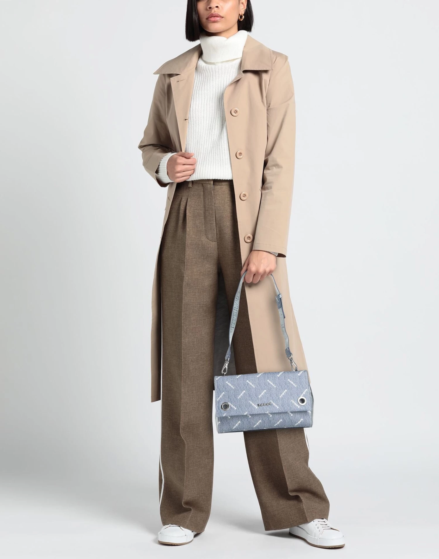 medium, coated fabric, laminated effect, metal applications, brand logo, logo design, fully lined, magnetic fastening, internal zip pocket, internal pocket, detachable top handle, detachable shoulder strap, daytime