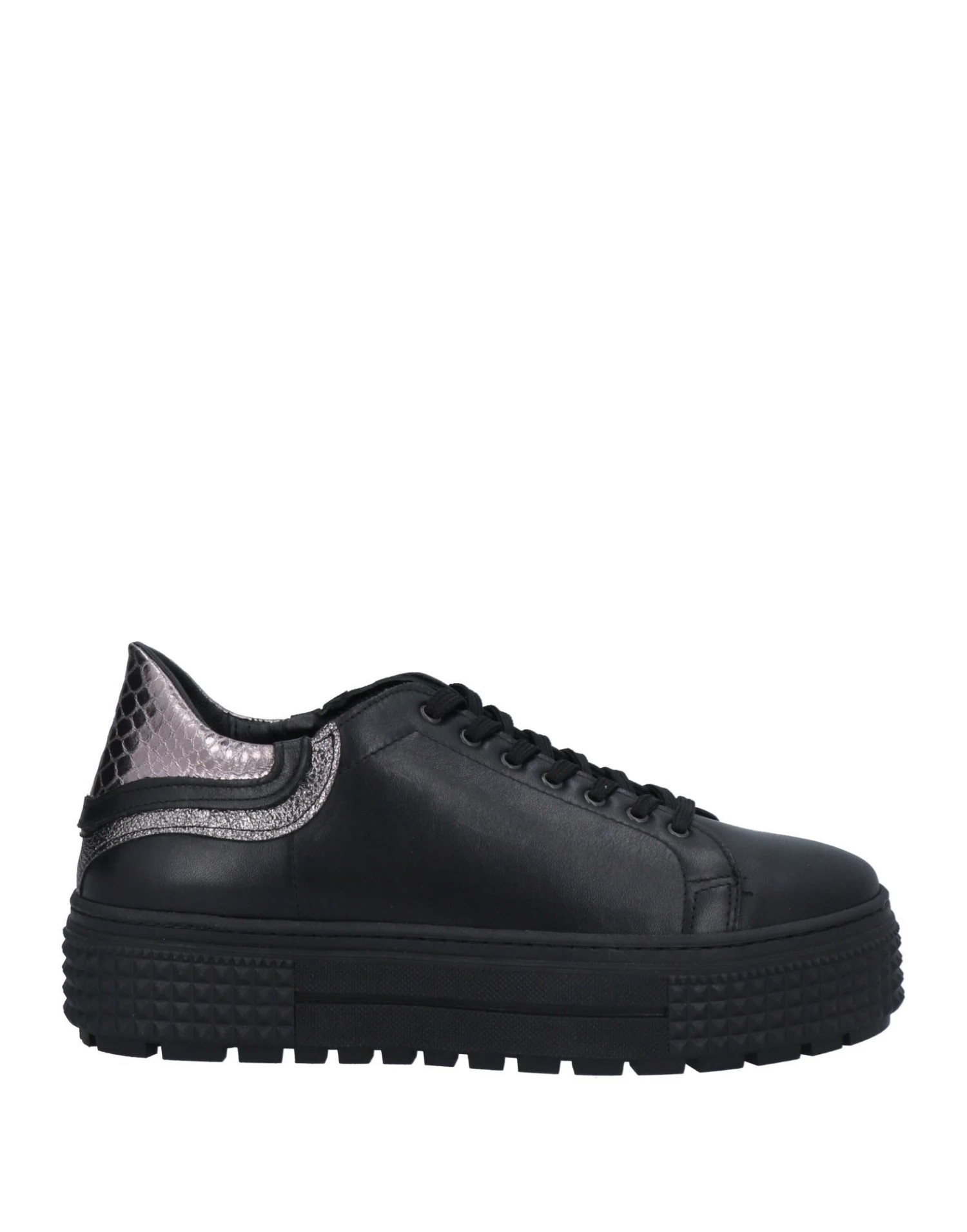 leather, snakeskin print, laminated effect, two-tone, brand logo, leather backing, laces, round toeline, flat, flatform, contains non-textile parts of animal origin