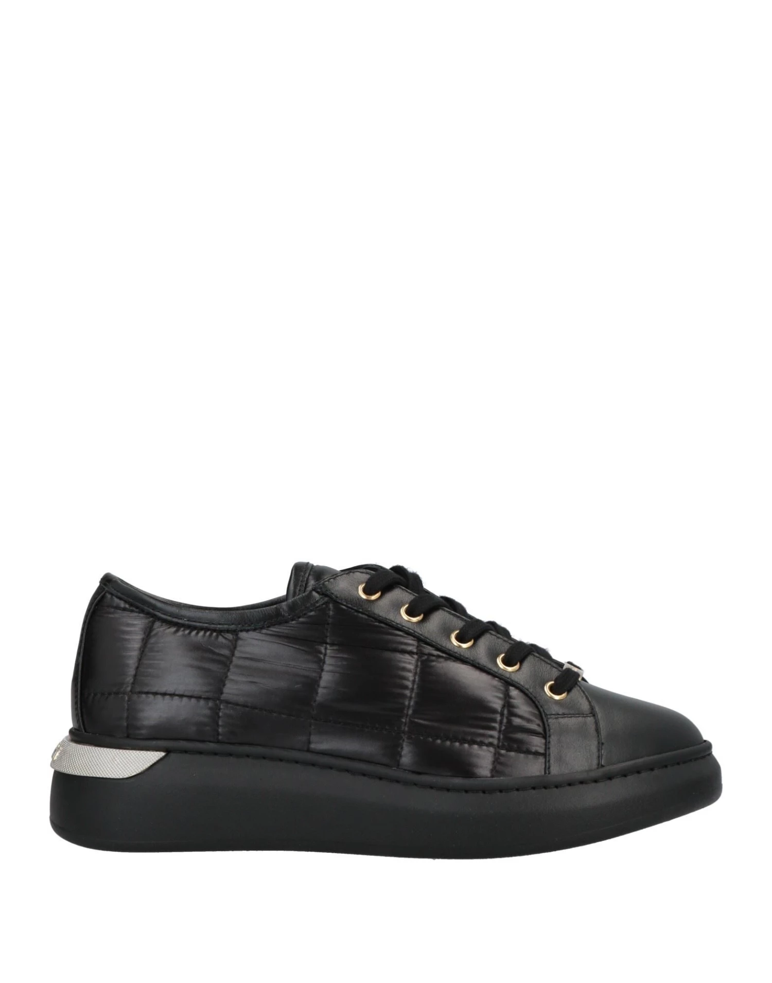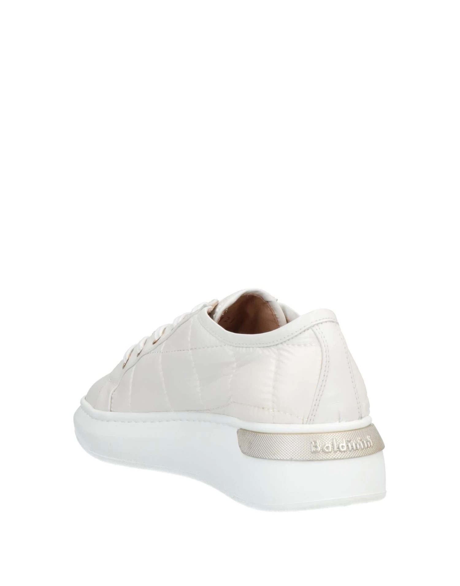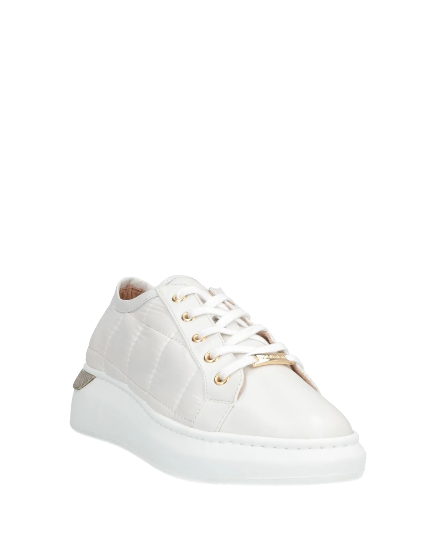 solid color, techno fabric, metal applications, leather backing, laces, flat, round toeline, rubber sole, quilted, contains non-textile parts of animal origin