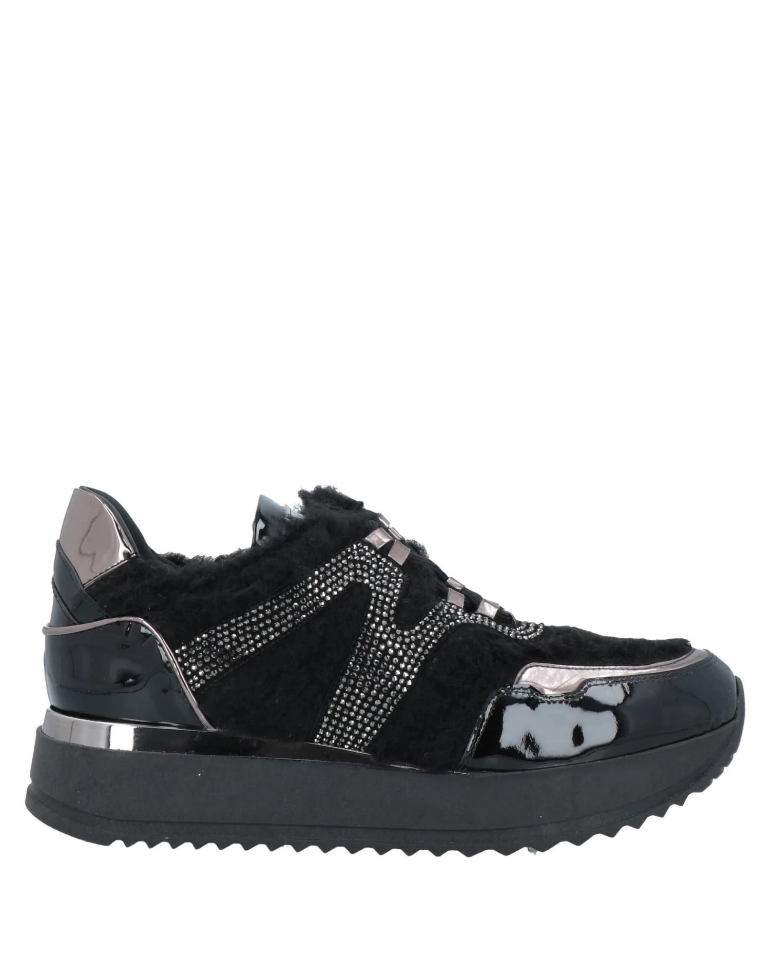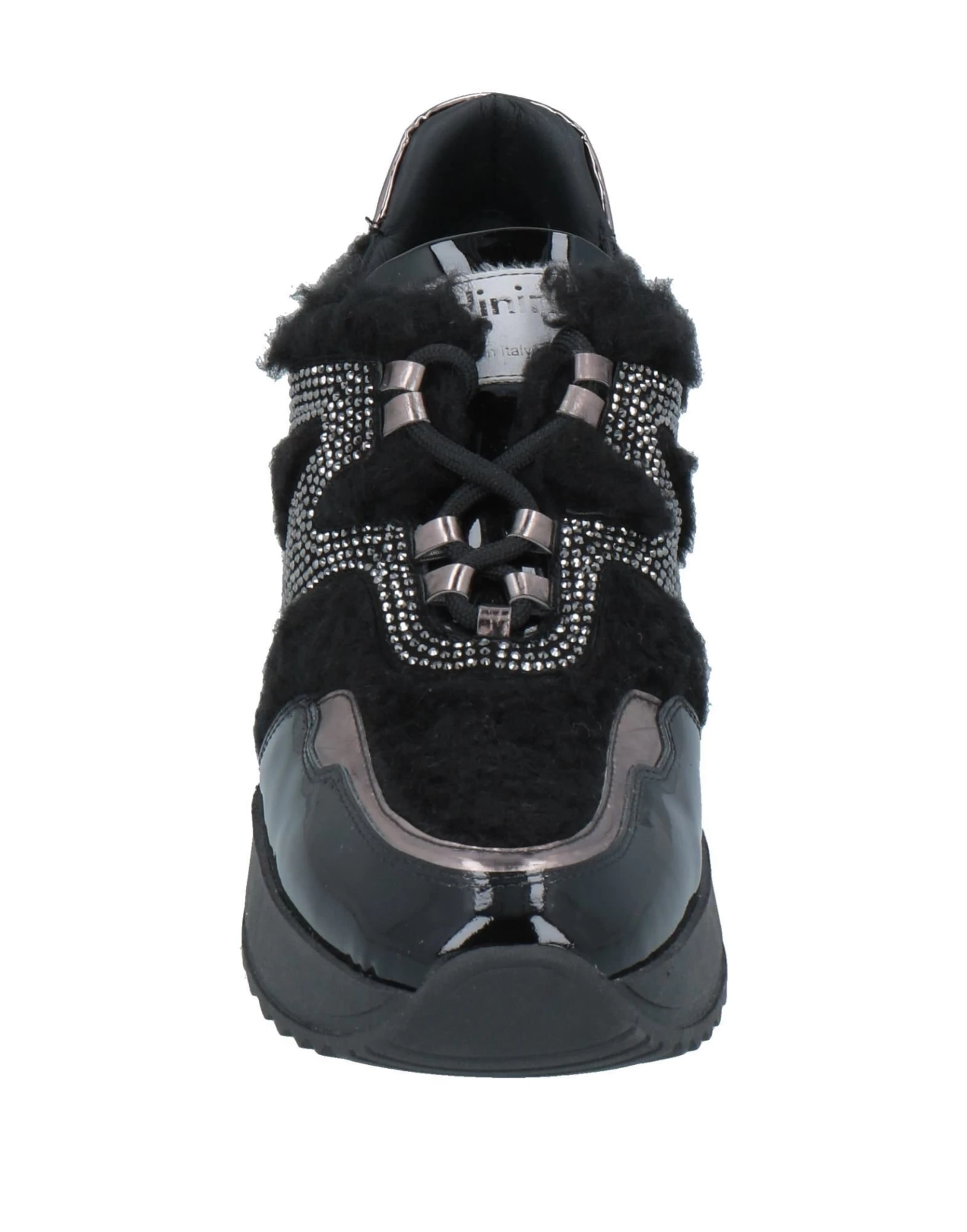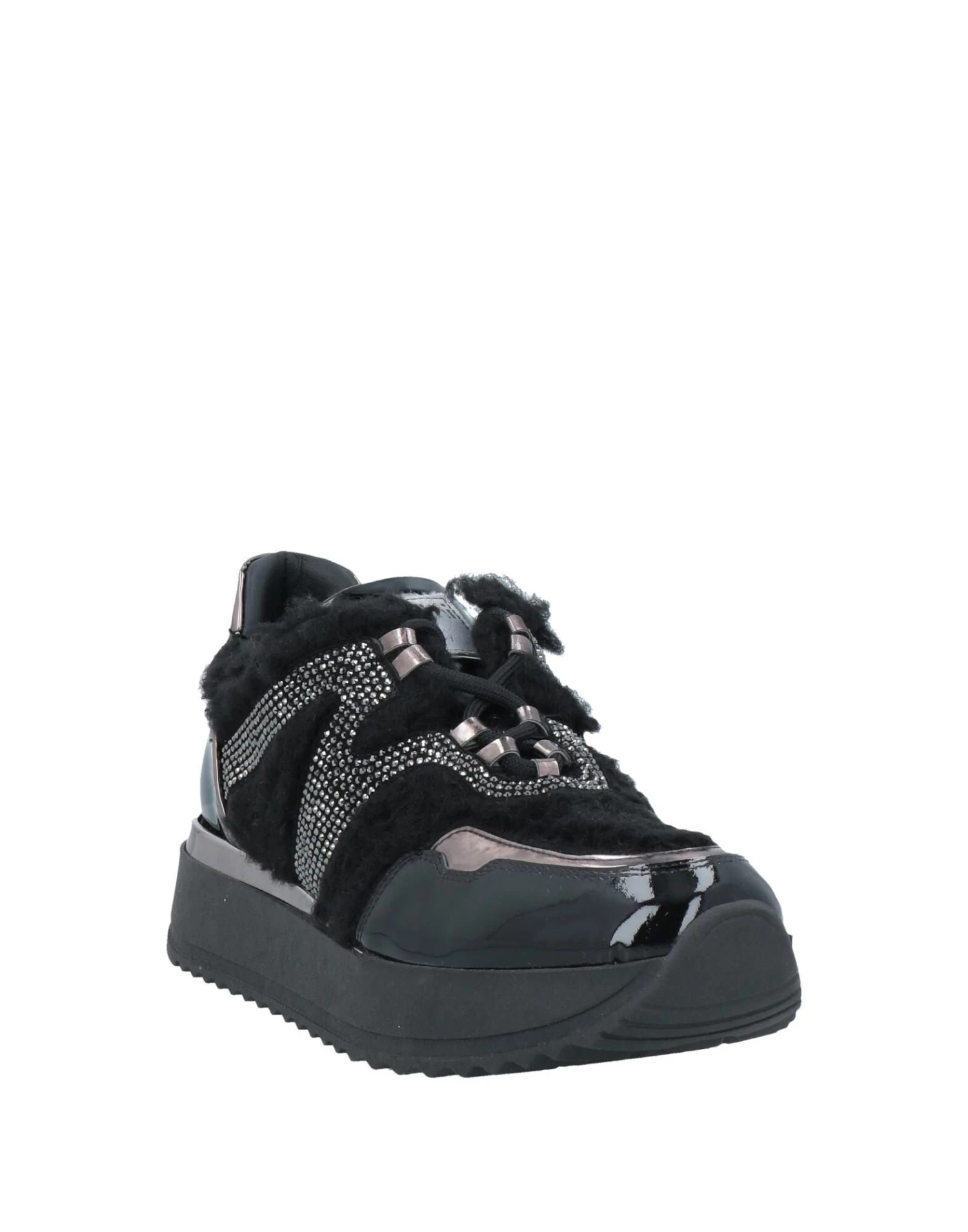 leather, varnished effect, laminated effect, rhinestones, brand logo, solid color, laces, round toeline, flat, flatform, leather backing, contains non-textile parts of animal origin