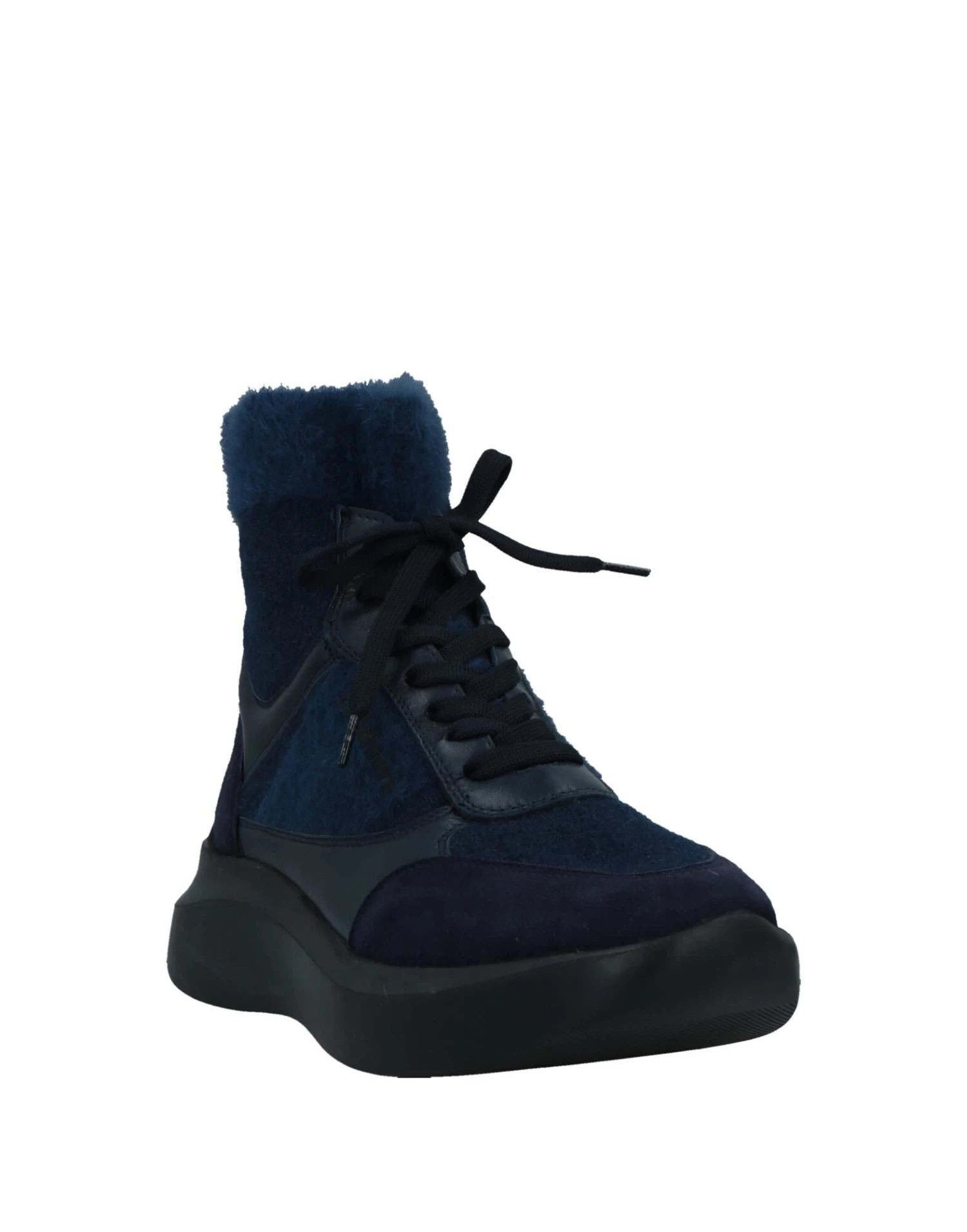 velour, suede effect, brand logo, multicolor pattern, fabric inner, laces, round toeline, flat, rubber sole, contains non-textile parts of animal origin
