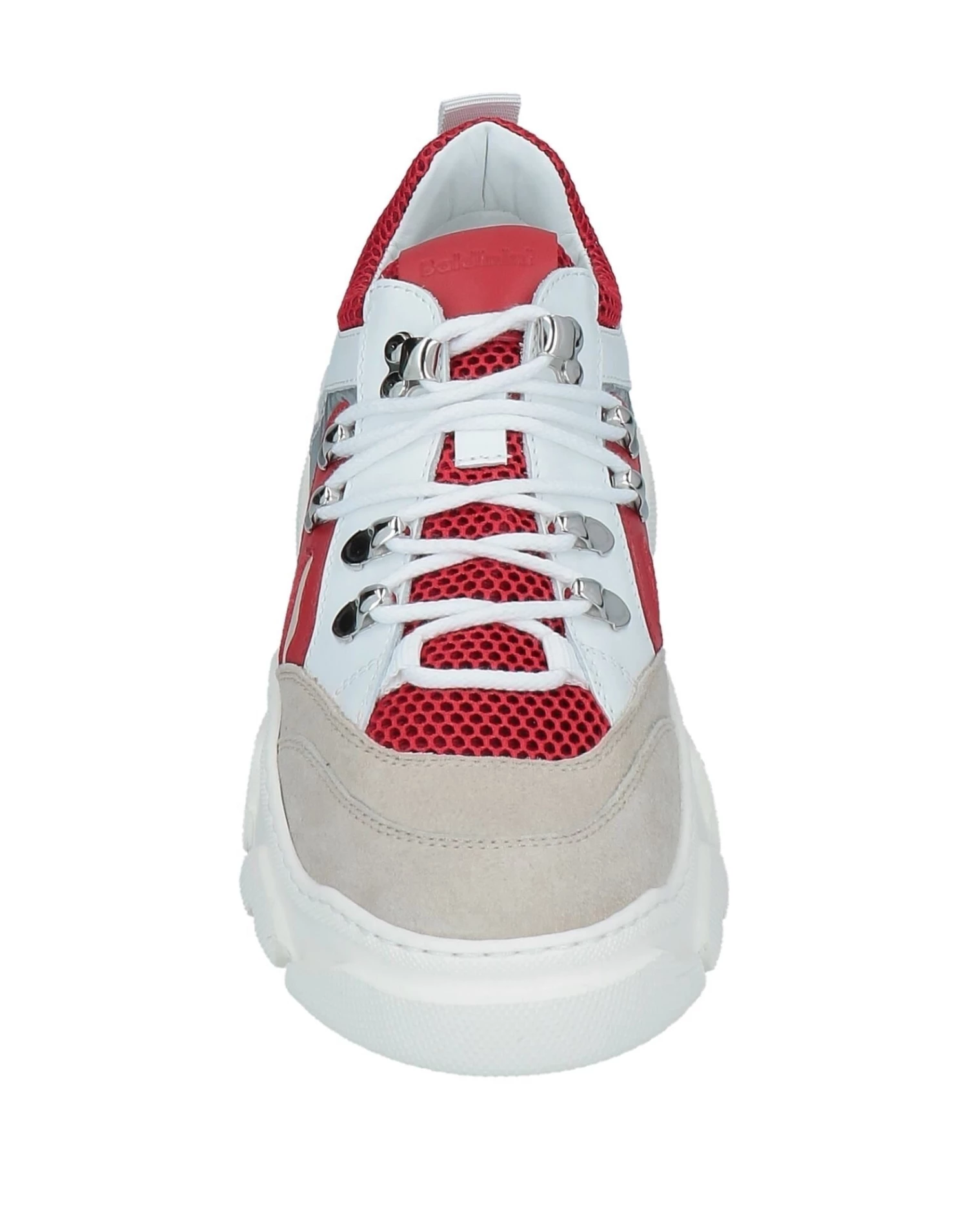 leather, suede effect, brand logo, multicolor pattern, fabric inner, laces, round toeline, wedge heel, rubber wedge, rubber sole, contains non-textile parts of animal origin